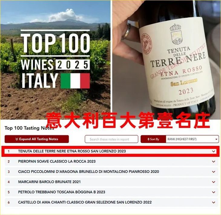 新鲜滚热辣!在著名酒评家James Suckling发布的2025年意大利百大葡萄酒榜单中(Top 100 Wines of Italy 2025),有这么一家酒庄,远在美丽的西西里亚,却如蓄力已久的闭关“扫地僧”,强弩一出,便轻松越过奇雅(Ciacci Piccolomini d'Aragona)、佩罗(Petrolo)等一众脍炙人口的老牌名家,登顶桂冠。