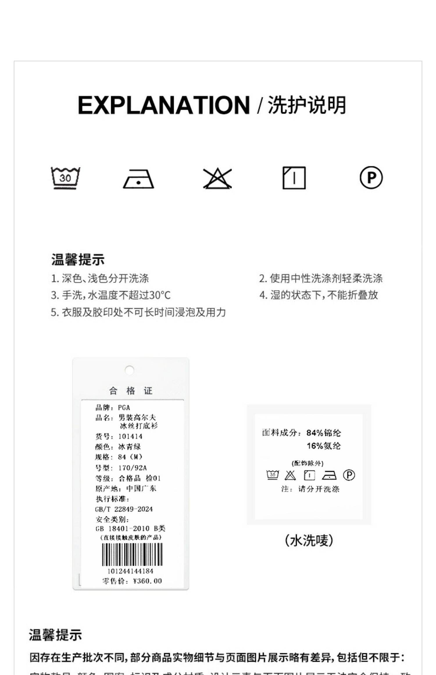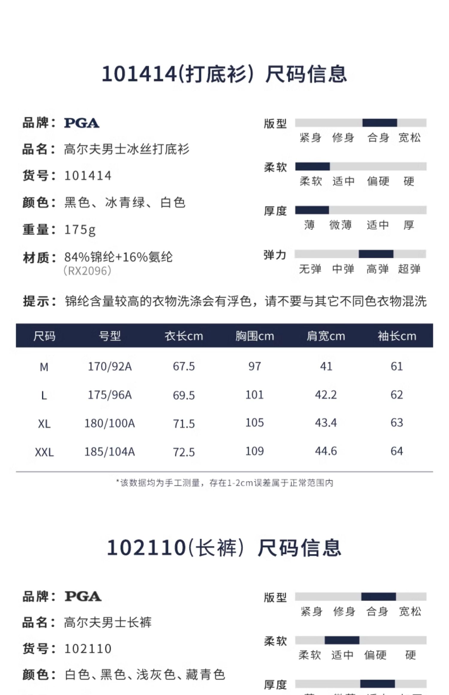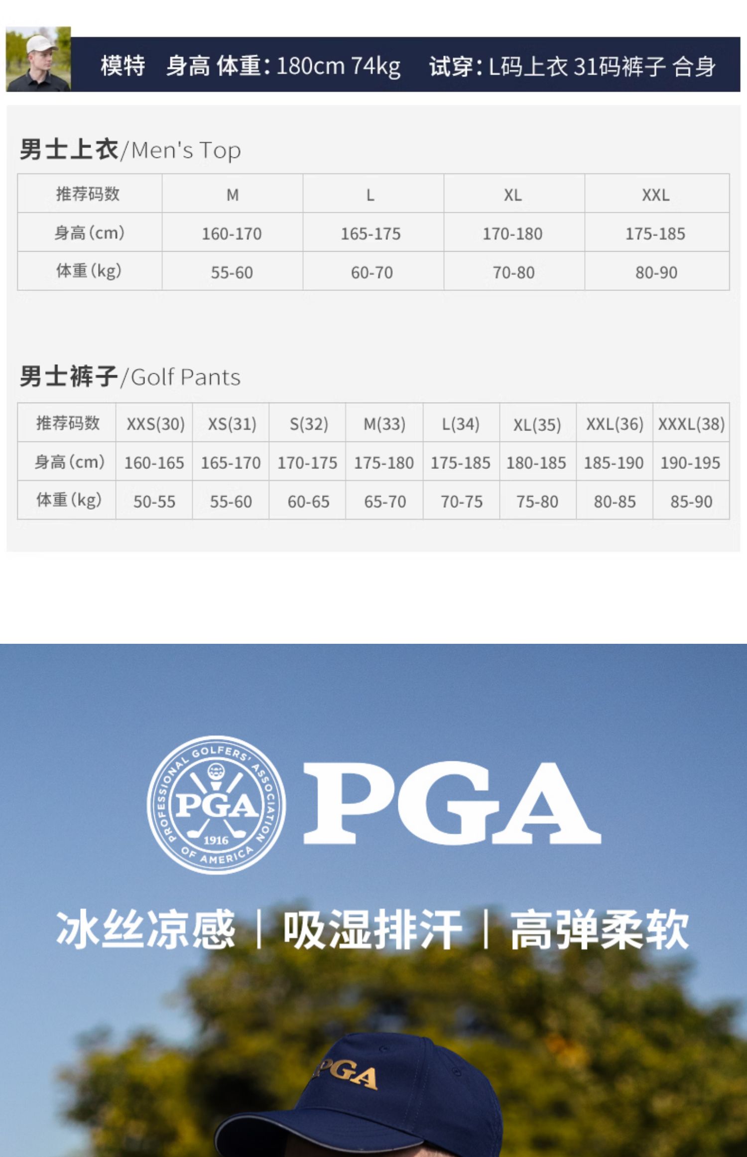 美国PGA新款高尔夫服装男装冰丝打底衫夏季凉爽透气服装上衣