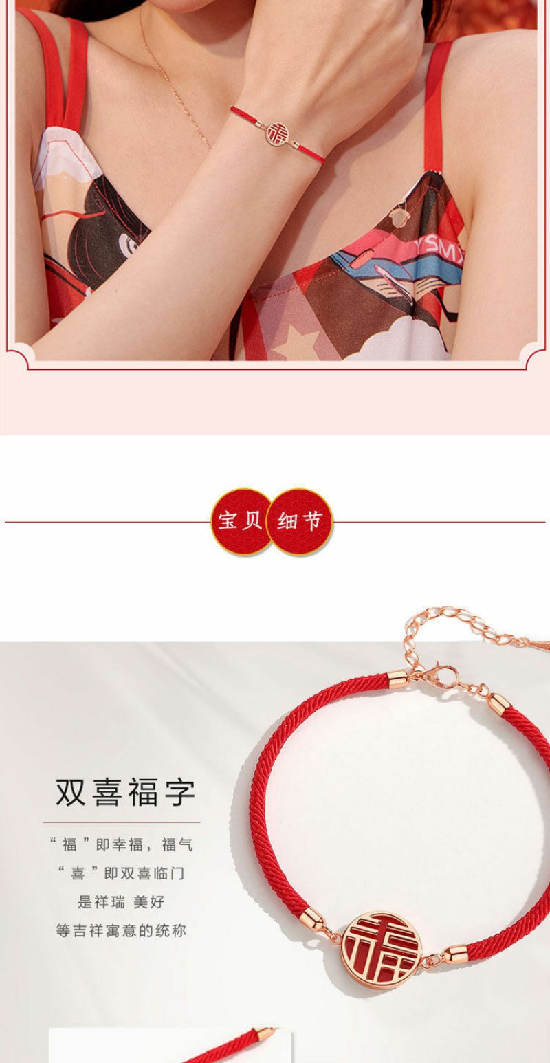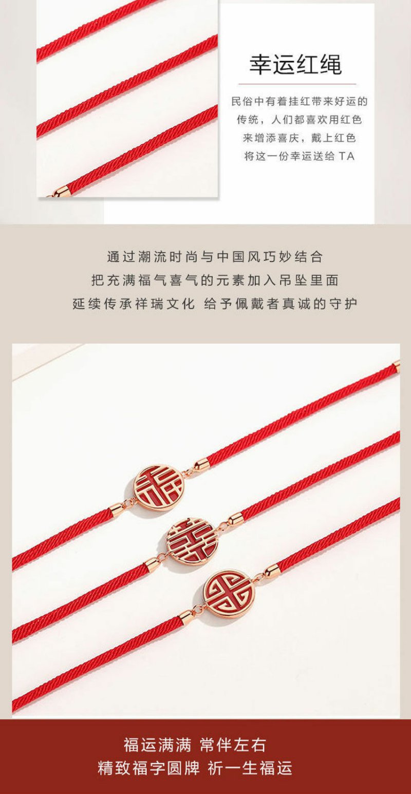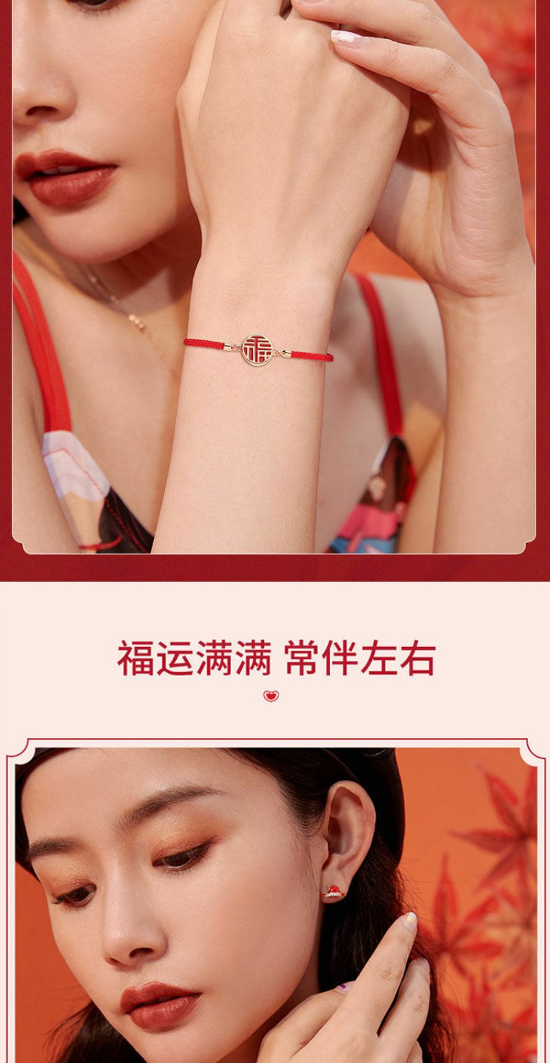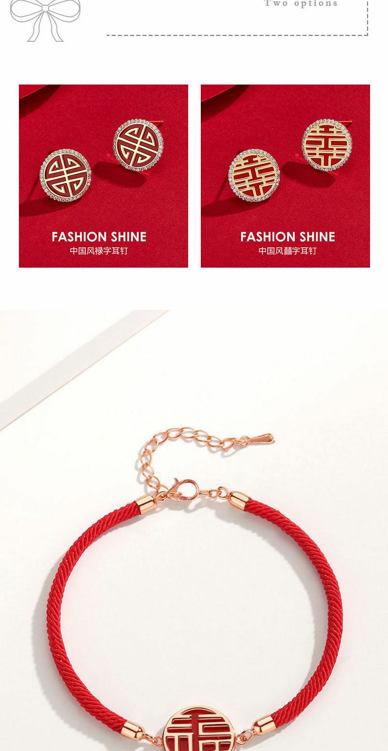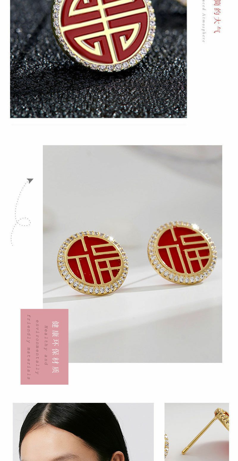 中国风新款S925银针红色喜福禄字耳钉短款国潮耳环新年喜庆耳饰
