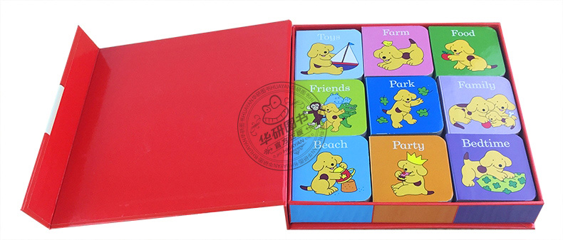 小玻翻翻书,在欧美属于家喻户晓的明星,小朋友们基本上都读过小玻的书,斑点小狗Spot(小玻)更是成为备受孩子喜爱的人气卡通形象。Spot: A Big Box of Little Books《小玻在哪里手掌迷你纸板书9册盒装》共有9本厚纸板迷你手掌书,书中涉及的场景都来源于孩子们的日常生活,能有效帮助孩子建立早期经验,发展对生活以及周围世界的认知和积极情感,适合0-2岁的孩子使用。