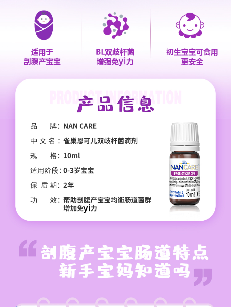 【保税仓】澳洲Nestle雀巢恩可儿婴幼儿双歧杆菌益生菌滴剂10ML