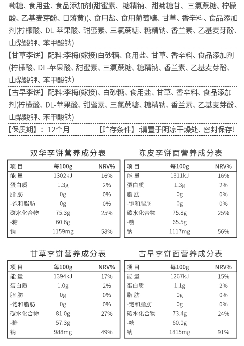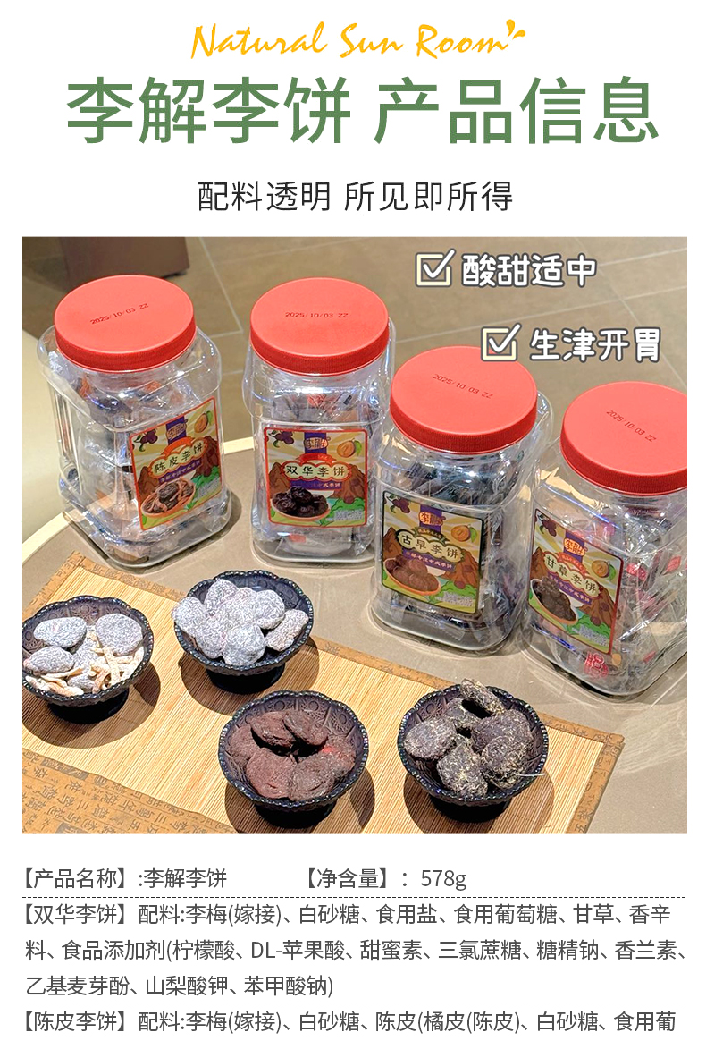 李解双华陈皮甘草古早李饼果脯蜜饯578g
