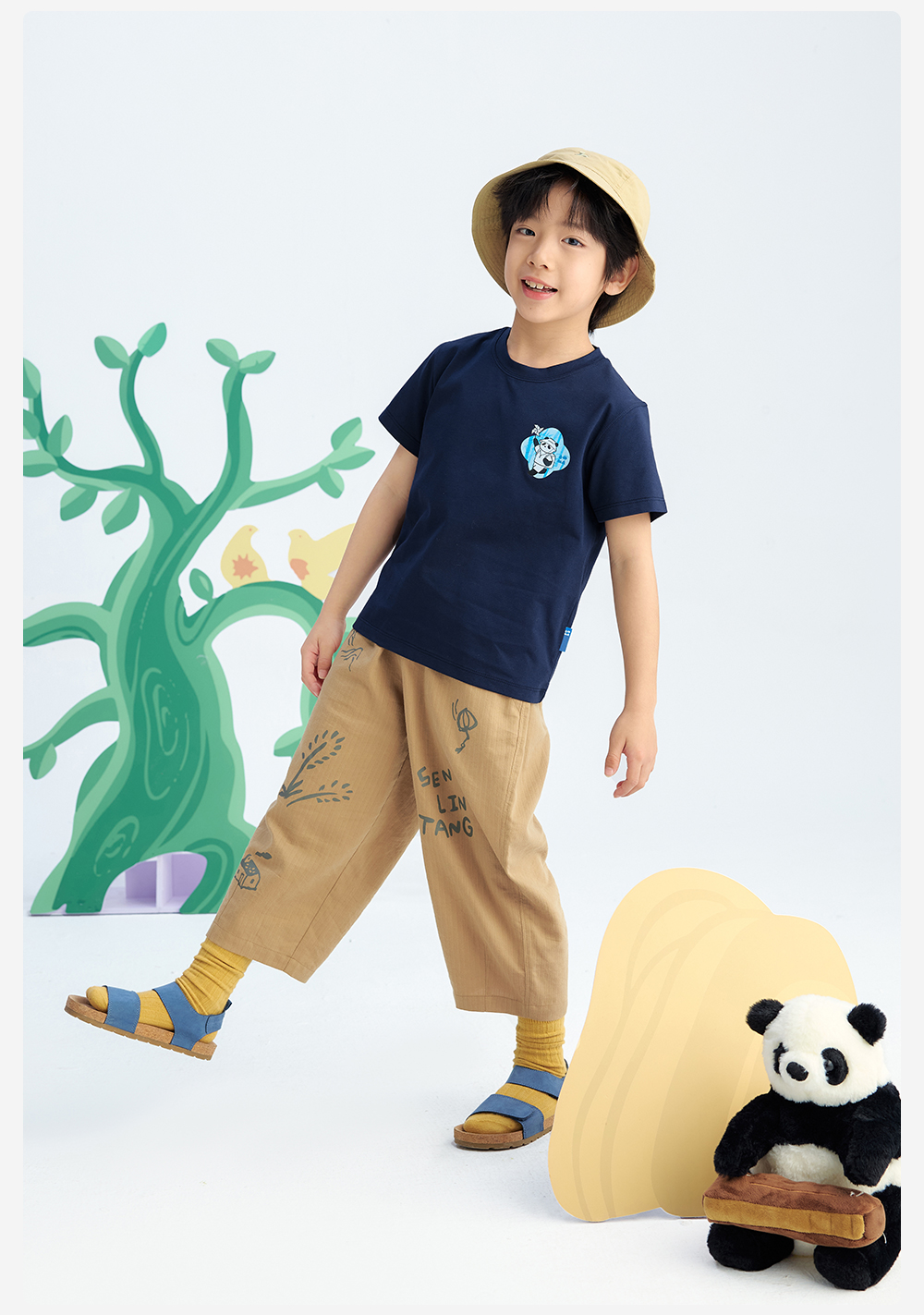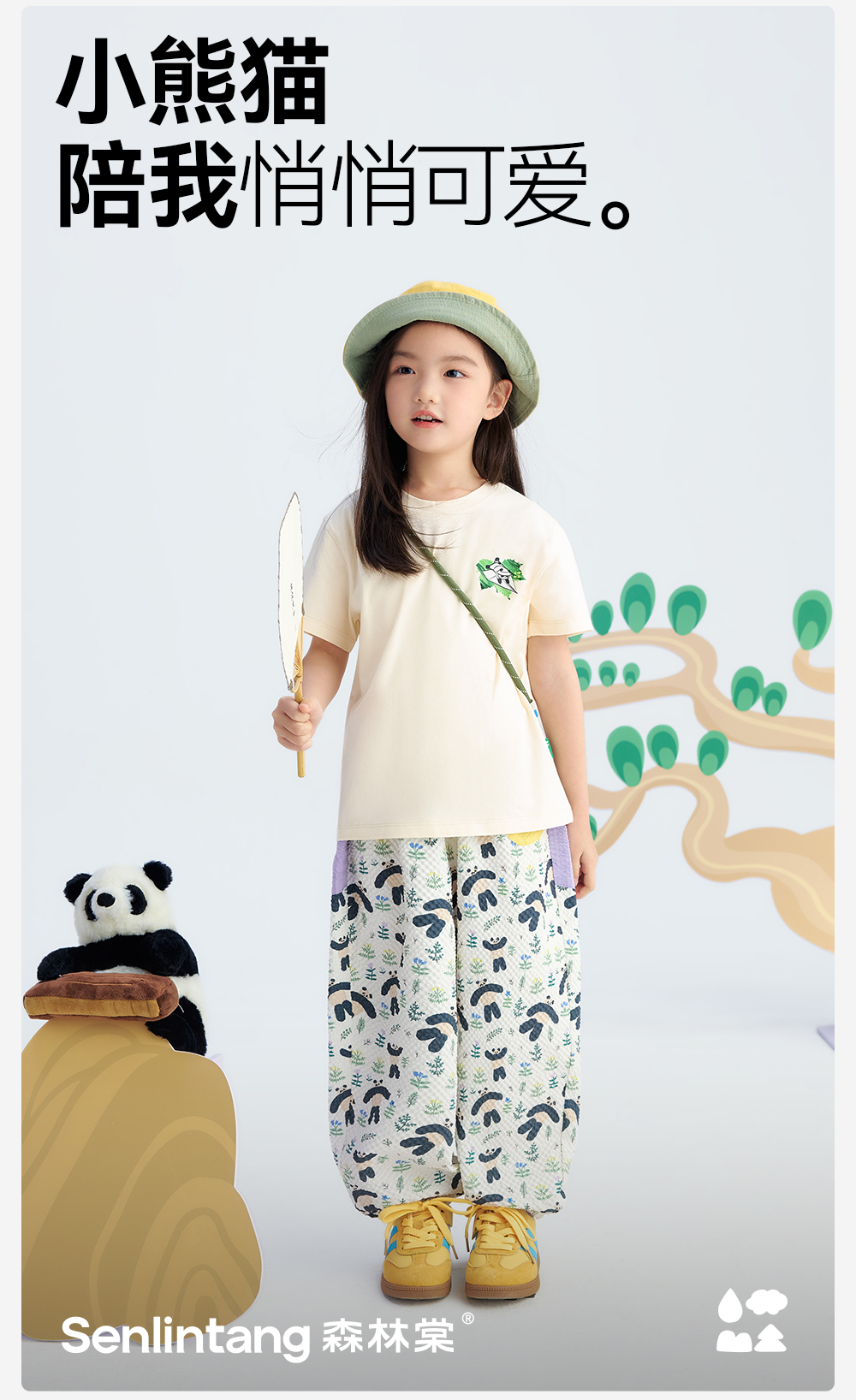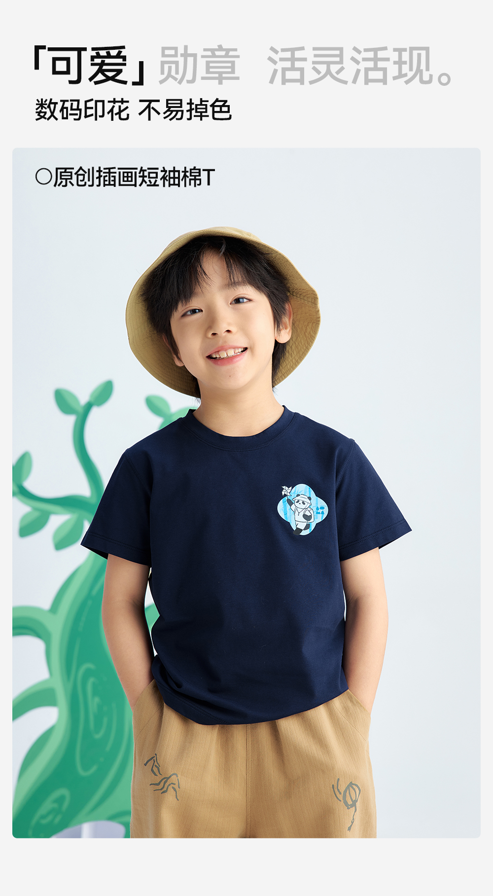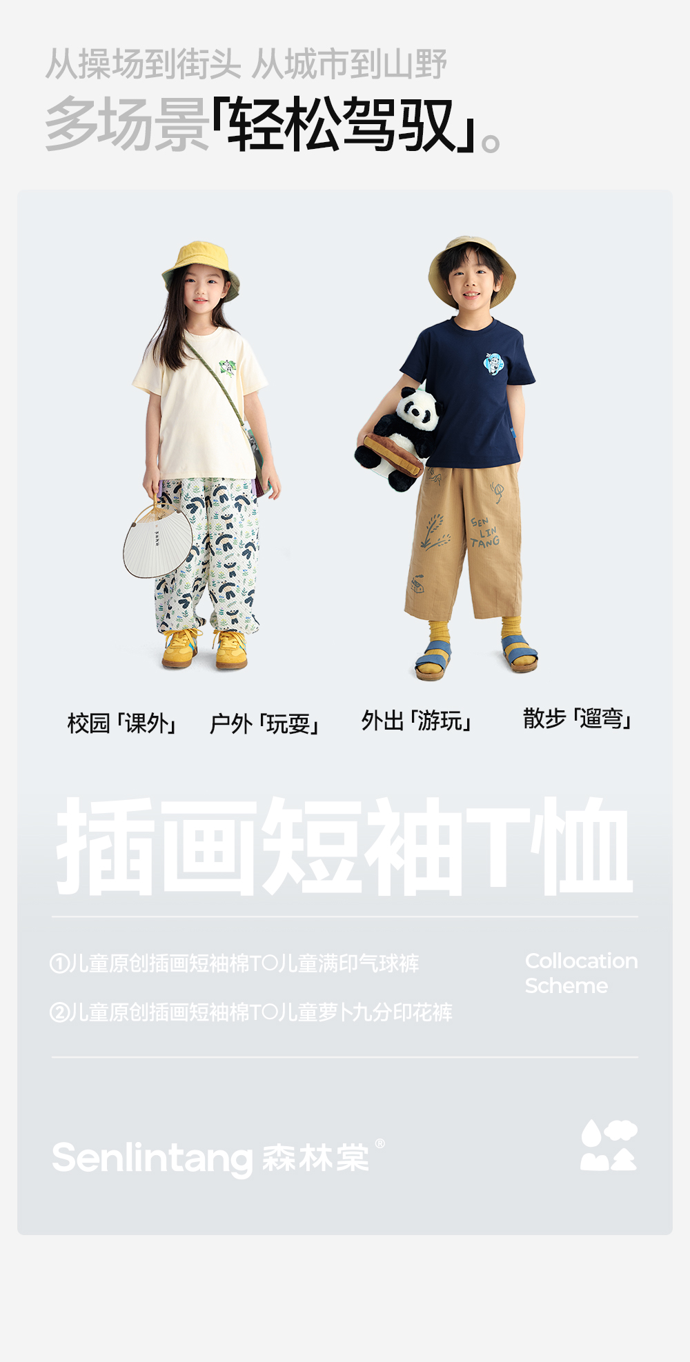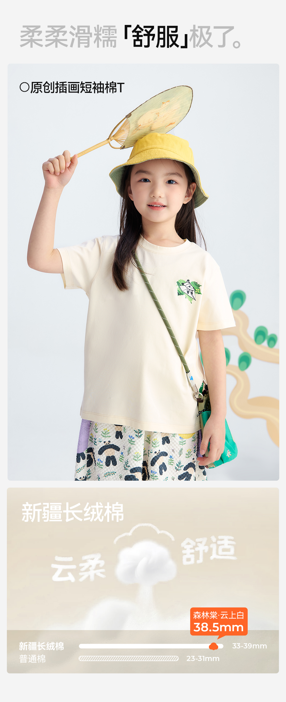 【儿童原创插画短袖】森林棠25夏款云上白棉感亲肤小童圆领T恤40162499