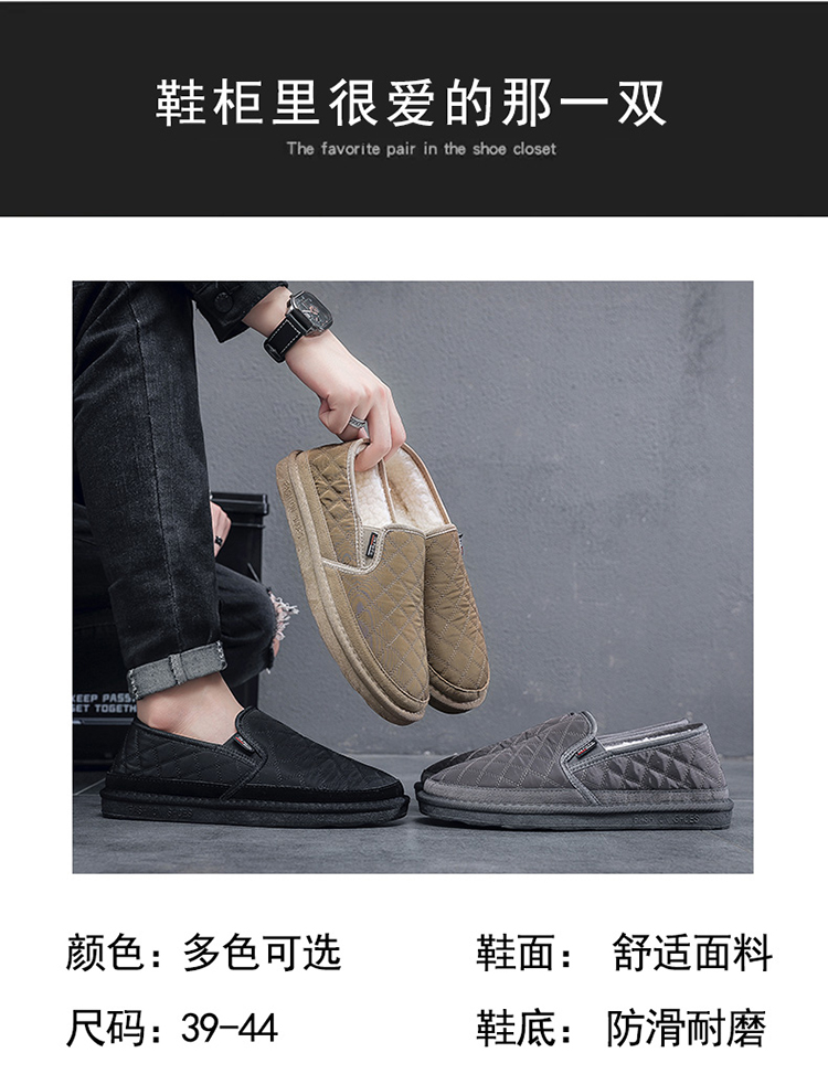 D111303冬季男士一脚蹬雪地鞋2025新款低帮加绒保暖棉鞋