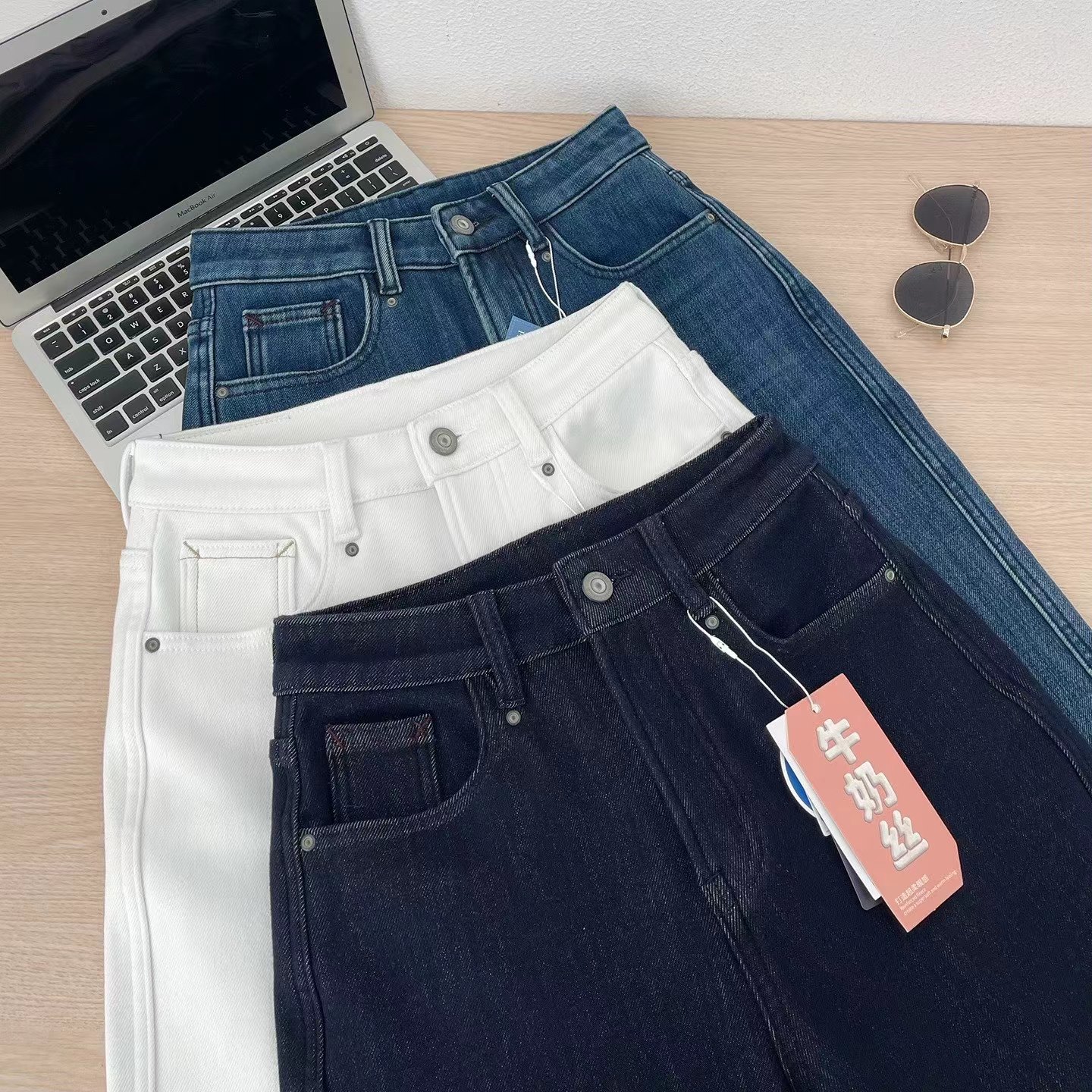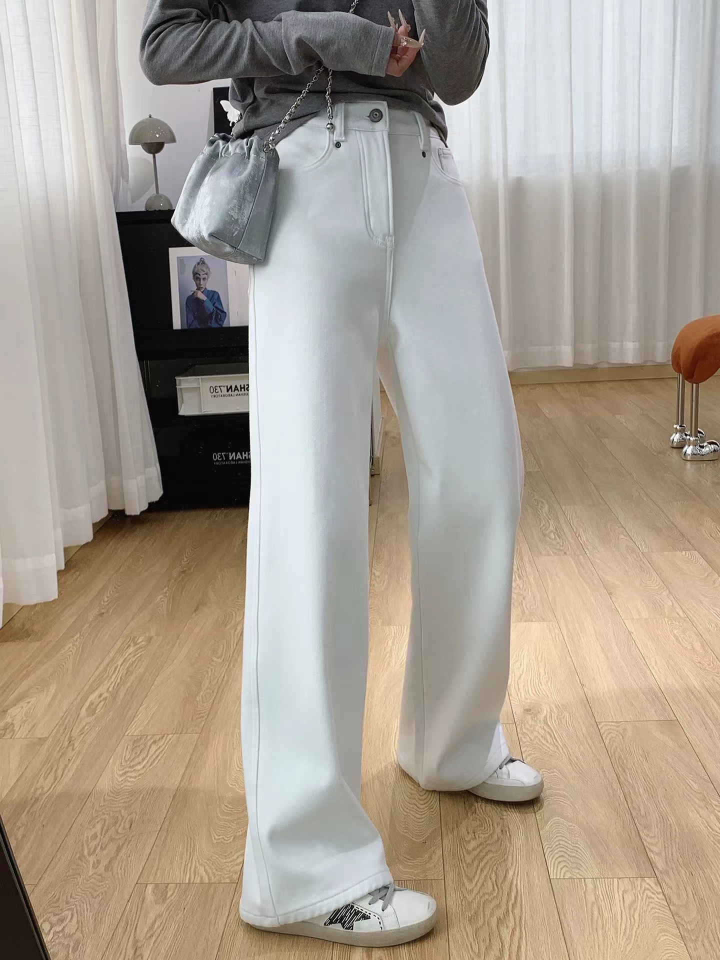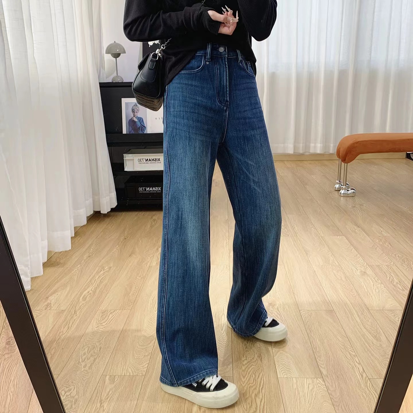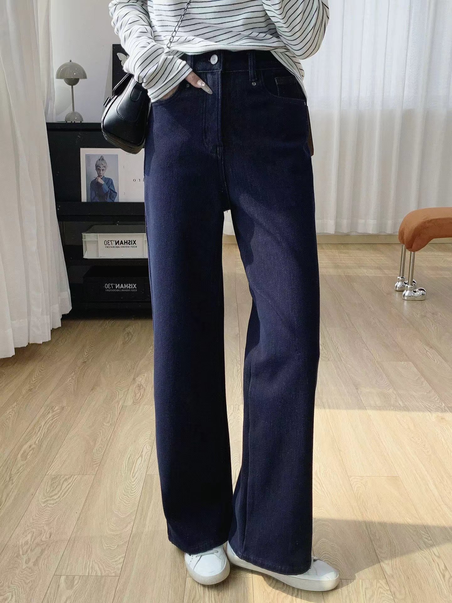 巨显瘦四面弹高腰加绒牛仔裤女秋冬裤子宽松直筒阔腿裤冬季长裤, 怕冷星人的本命牛仔裤来啦冬日刚需哦密密的一层牛奶丝绒顶得住冬天的冷风直吹它不是秋款的那种薄磨绒而是那种糯糯的暖肤绒密而柔软穿上也不会觉得腿胖一圈,暖而显瘦就对了冬天zui怕裤子紧绷,这条是做了四面弹的瞬间回弹弹性大上身不勒也不会紧自由自在无束缚0压感款式做的jing典直筒版型莞美藏住肉肉隐匿臀胯不自信和问题腿型巨藏拙显瘦视觉顺直双腿轻松穿出纤瘦骨感腿型很推荐怕冷又想要利落感的姑娘试试!