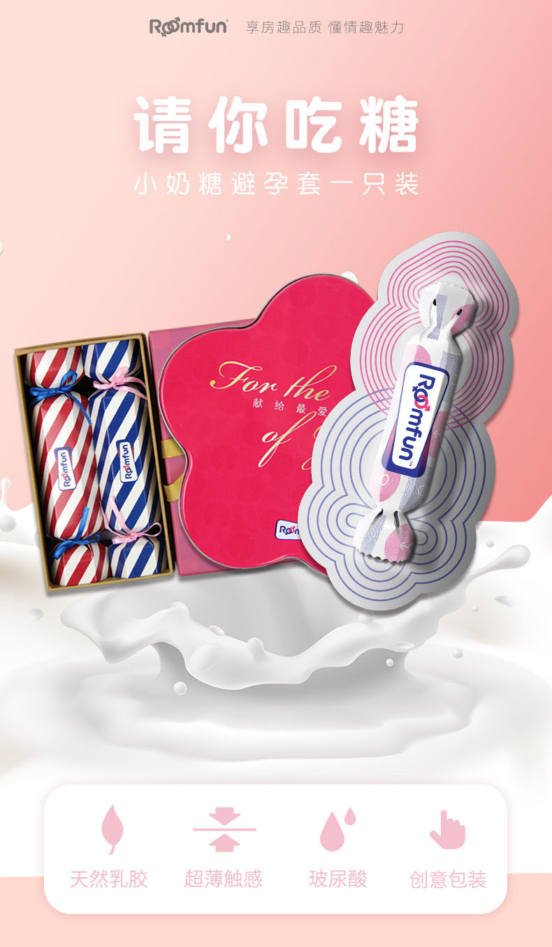 roomfun房趣玻尿酸安全套创意大白兔奶糖超薄避孕套情趣成人用品可做赠品礼物