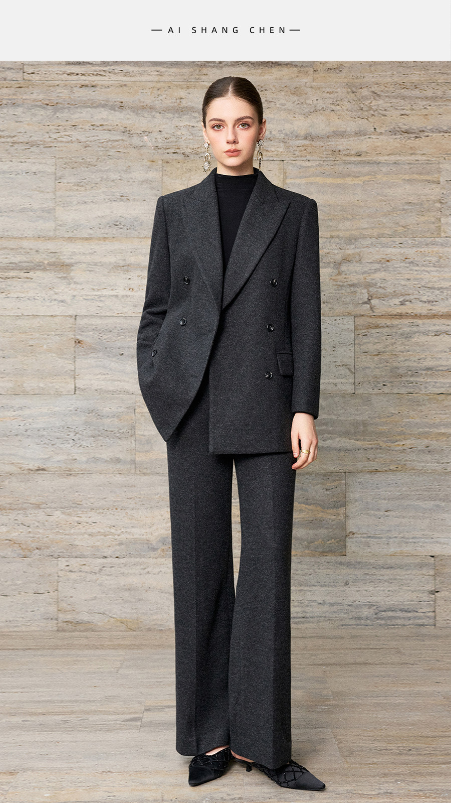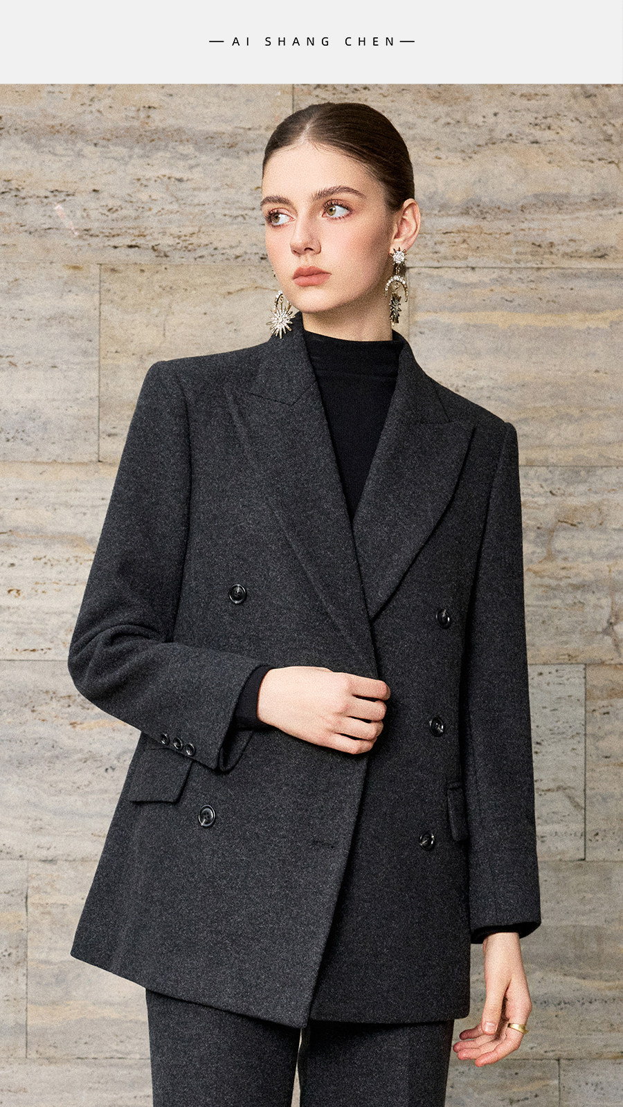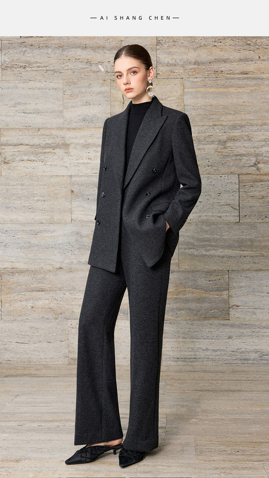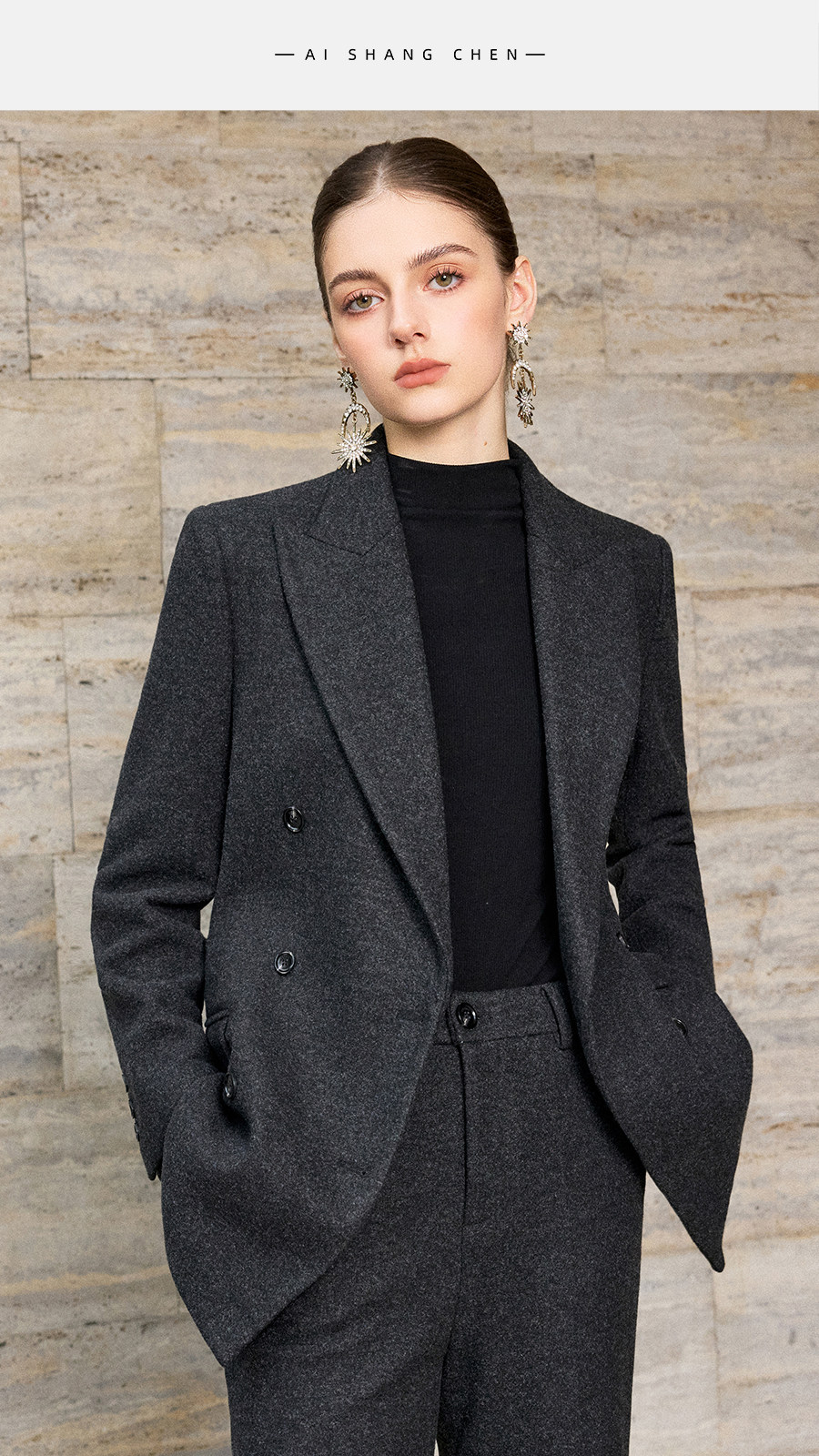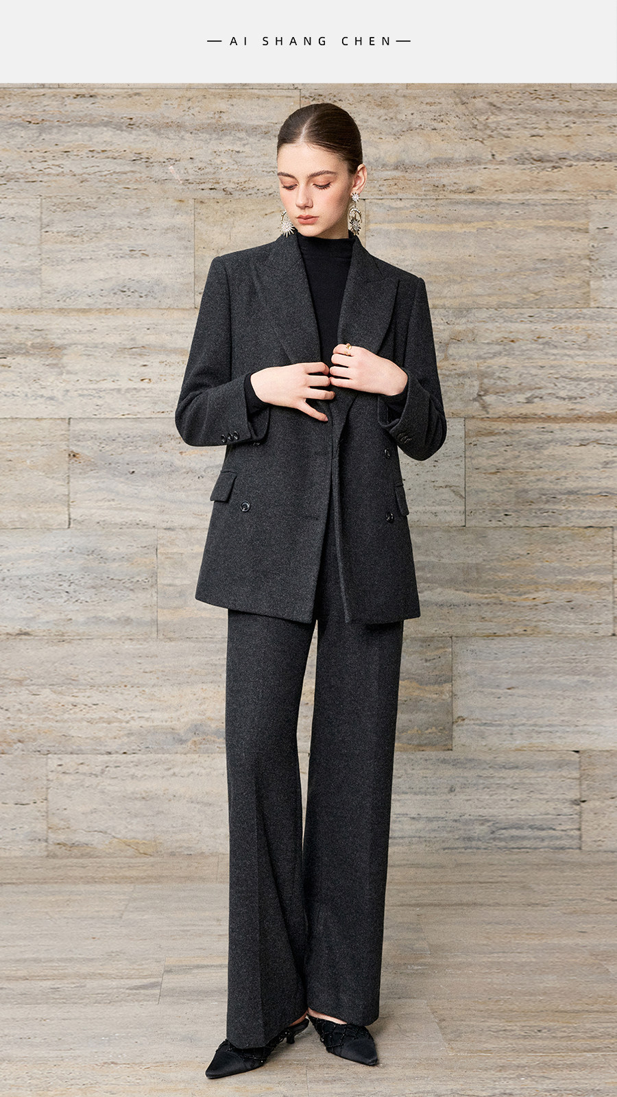 艾尚臣羊毛oversize西装套装女秋冬老钱风西服正装气质通勤职业装
