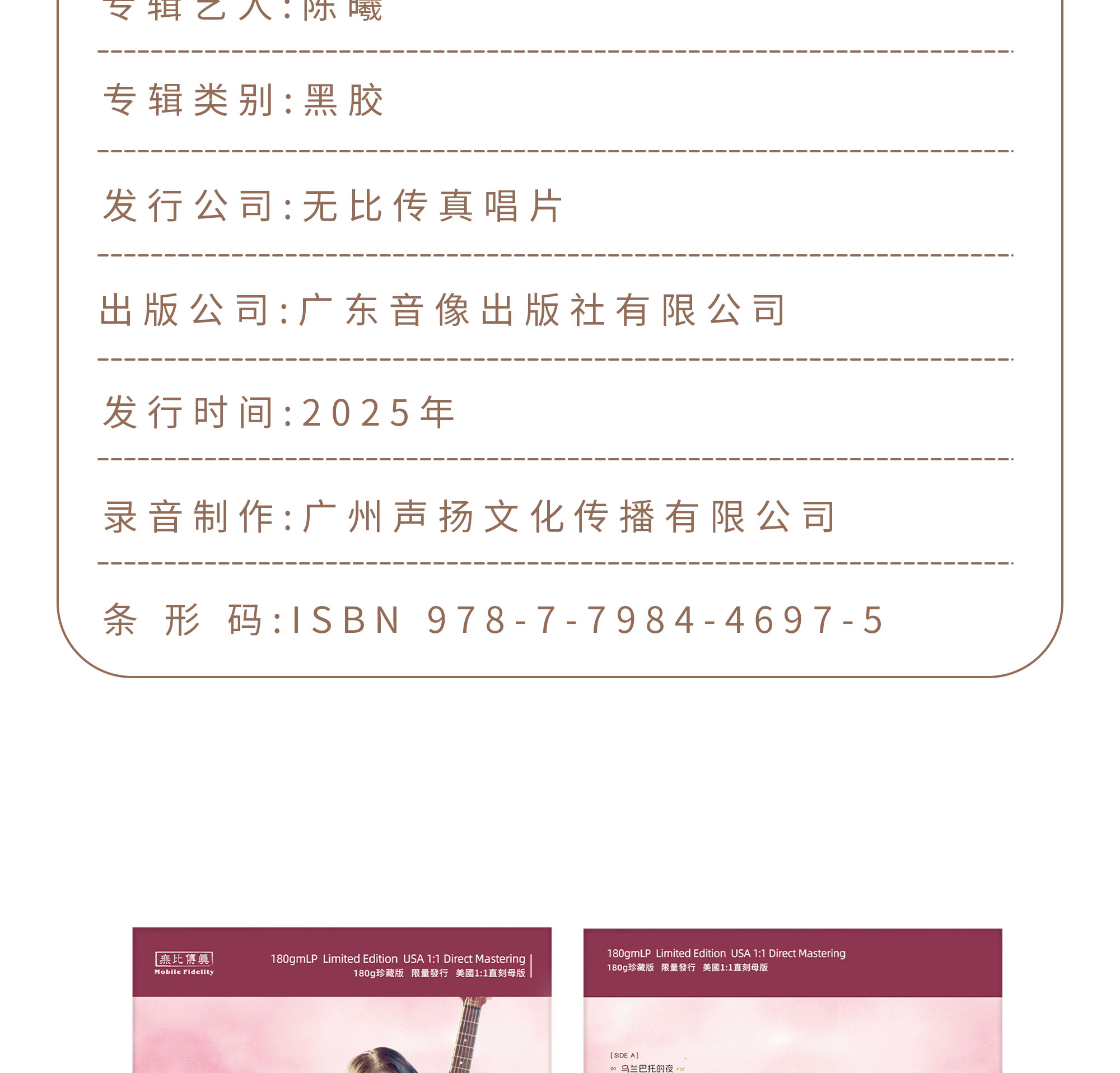 陈曦 《多年以后》经典黑胶LP 发烧黑胶唱片 留声机专用 无比传真