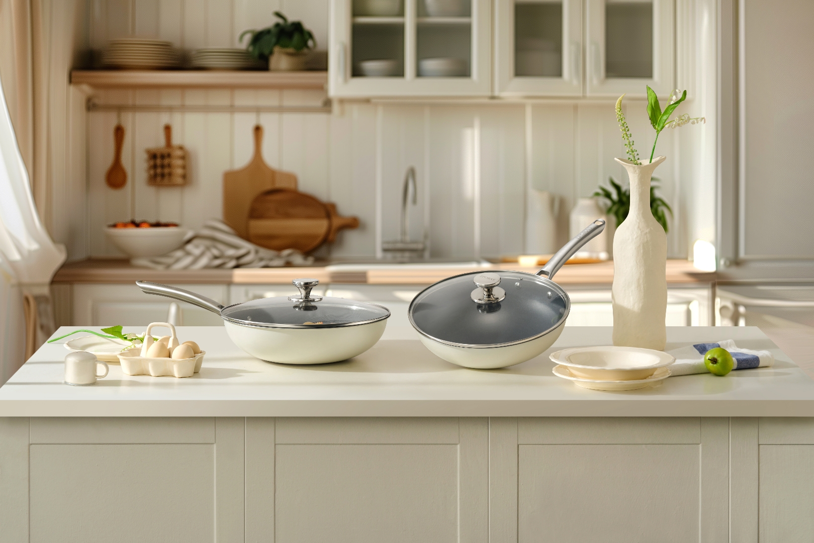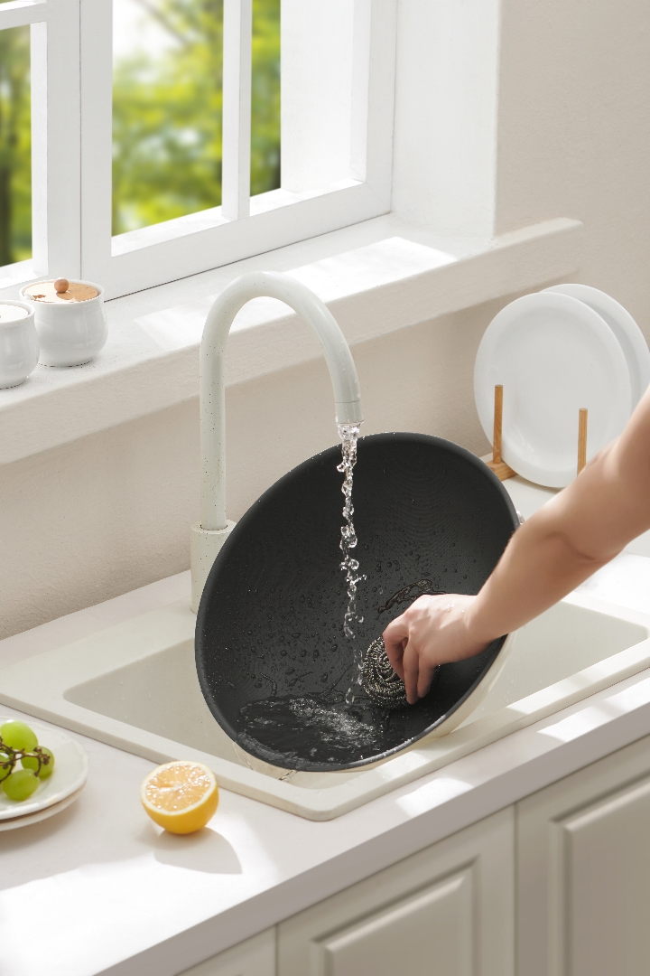 颜值没话说,放在厨房,简洁清爽。把手趁手,轻松拿捏,颠勺都很顺畅。