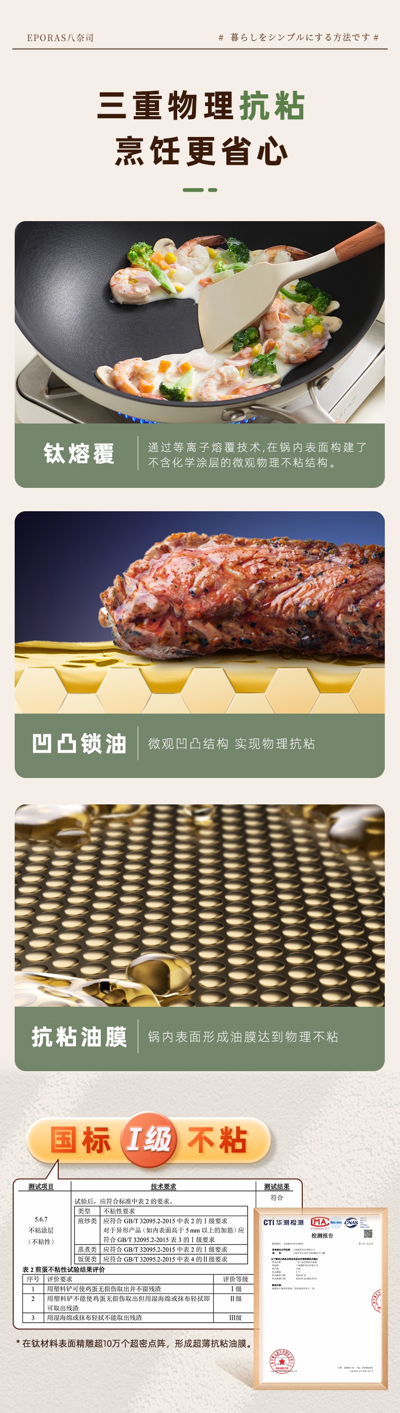 2. 锅壁“钛”合金熔覆层具有微观凹凸储油结构,形成的油膜有助抗粘。