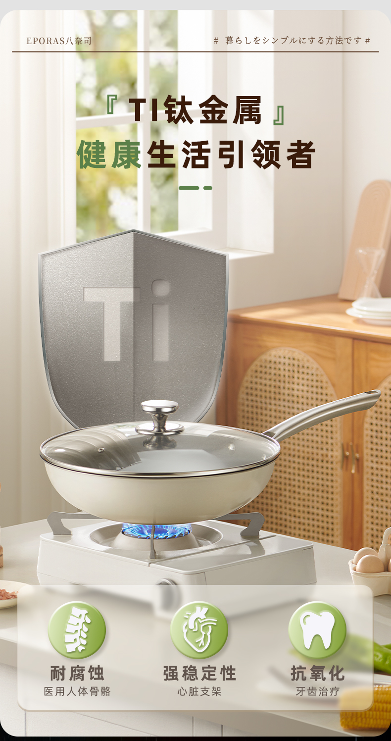 本来,好物担当方哥还沉浸在这口铁锅在烹饪中的“无敌能打”,直到又遇到今天这口0涂层钛锅。方哥夸张地说:“无敌好用,简直‘一锅走天下’啊。”自从认识特氟龙这个词之后,方哥和很多人一样,对一般不粘锅敬而远之。用过的朋友都知道,虽然人人都说铁锅好,但铁锅为了达到不粘,需要放大量的油,烧到高温烟点,还要清理飞溅的油点......要把一口锅养到完全不粘的厚厚油膜,需要一些技巧和耐心。方哥作为从事家庭烹饪近30年的“买锅大王”,这些年买过的各种锅不下十几个。当时方哥和大家分享的八奈司进口铁锅,用了很惊艳,确实好用,和以前家里用的见过的一般铁锅不一样。▲八奈司铁锅轻量化设计,力气小的人也可以轻松使用。有很多抱抱粉选购,后台都是好评,简单概括就是“好用不贵”。也有用户在后台留言:铁锅虽好,但是多少需要打理,要会用才好用,有没有那种0门槛的,随便造都没问题的锅?安全健康是前提,不粘、无涂层,基本不用搭理,适合懒人忙碌的人,喜欢简单的人?其实,这样一口锅也是方哥梦寐以求的,这次终于找到,分享给大家。一日三餐佳肴,健康无忧,安心常伴左右。铁铲也可以随便造。钛材质的炒锅的性能远超不锈钢锅、铁锅等。抗腐蚀性更好,不会与食物产生化学反应,更不用担心重金属析出从而危害到身体健康。经常炒菜的朋友可能都有一个痛点,很多菜炒久了熟透了,出锅时软趴趴的,炒的少了又不熟。这款新钛锅的导热性能是普通锅的200%,快速热锅、炒菜,很接近后厨大火炒的味道。厚底薄壁的造型,传热更快,中小火就能爆炒,省时又省力。锅底深度足,阔口圆底,来回滑炒很顺畅,炖排骨、熬汤,炖只整鸡也放得下。锅热得快,食物里里外外都受热均匀,就不容易糊锅,油烟也更少(油烟就是锅中心和四周温度不一样,食物受热不匀引起的)。而且用锅后,难清洗的痛也不用烦恼了,着急下一道菜的时候,基本上用纸巾就能擦干净。