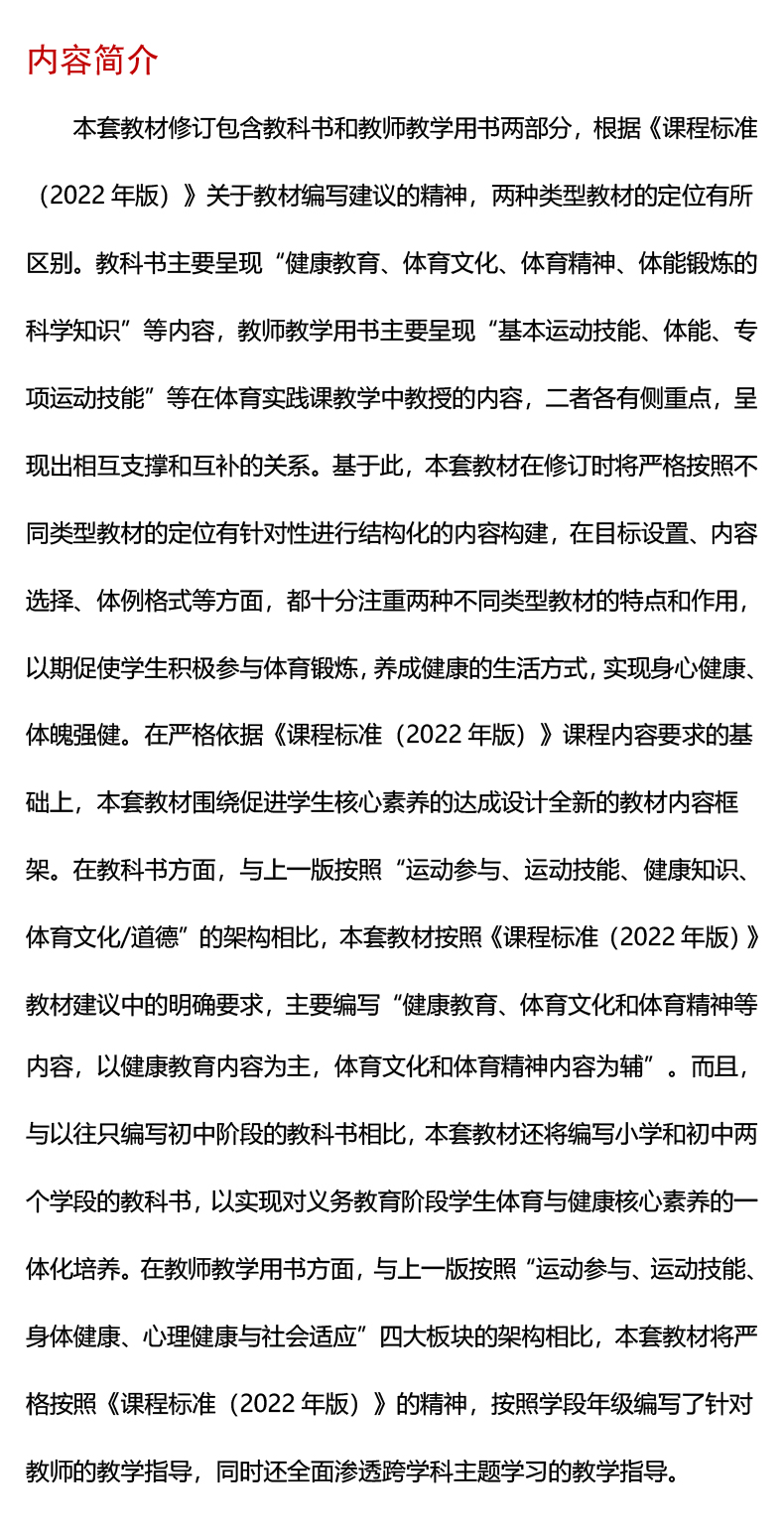 义务教育教科书 教师用书 体育与健康 1-9年级