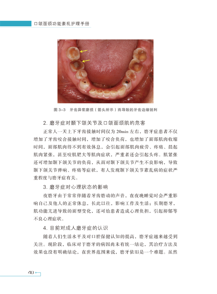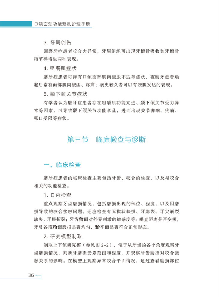 本书首先介绍了口颌面颈部功能解剖,随后讲解颞下颌关节紊乱病、咬合病、磨牙症、肩颈功能紊乱等口颌面功能紊乱相关疾病的诊治、护理要点、健康宣教等内容。本书具有鲜明的专科特色,是有关口颌面颈功能紊乱的第一部护理专著。