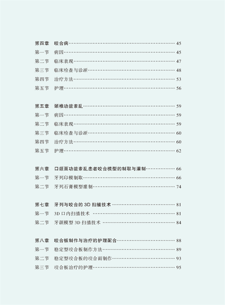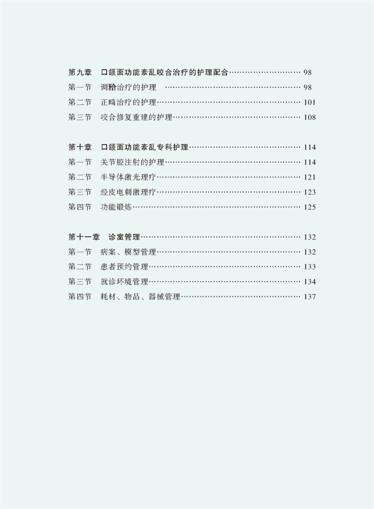 本书作者通过总结多年的临床护理工作经验,并借鉴其他专科护理工作内容,梳理出一套针对颅颌面颈功能紊乱治疗的专科护理标准操作流程、管理模式以及健康管理方法。希望通过本书普及口腔专科护理人员对颅颌功能紊乱的知识,规范护理工作流程及管理模式,提高临床护理质量,提升患者对医护项目的配合度,进而提升颅颌面功能紊乱疾病的治疗与康复水平。
