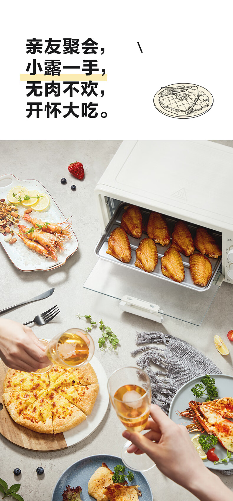美的(Midea) PT10X1多功能家用 迷你小烤箱 电烤箱蛋糕烘焙 60-230℃调温 白色