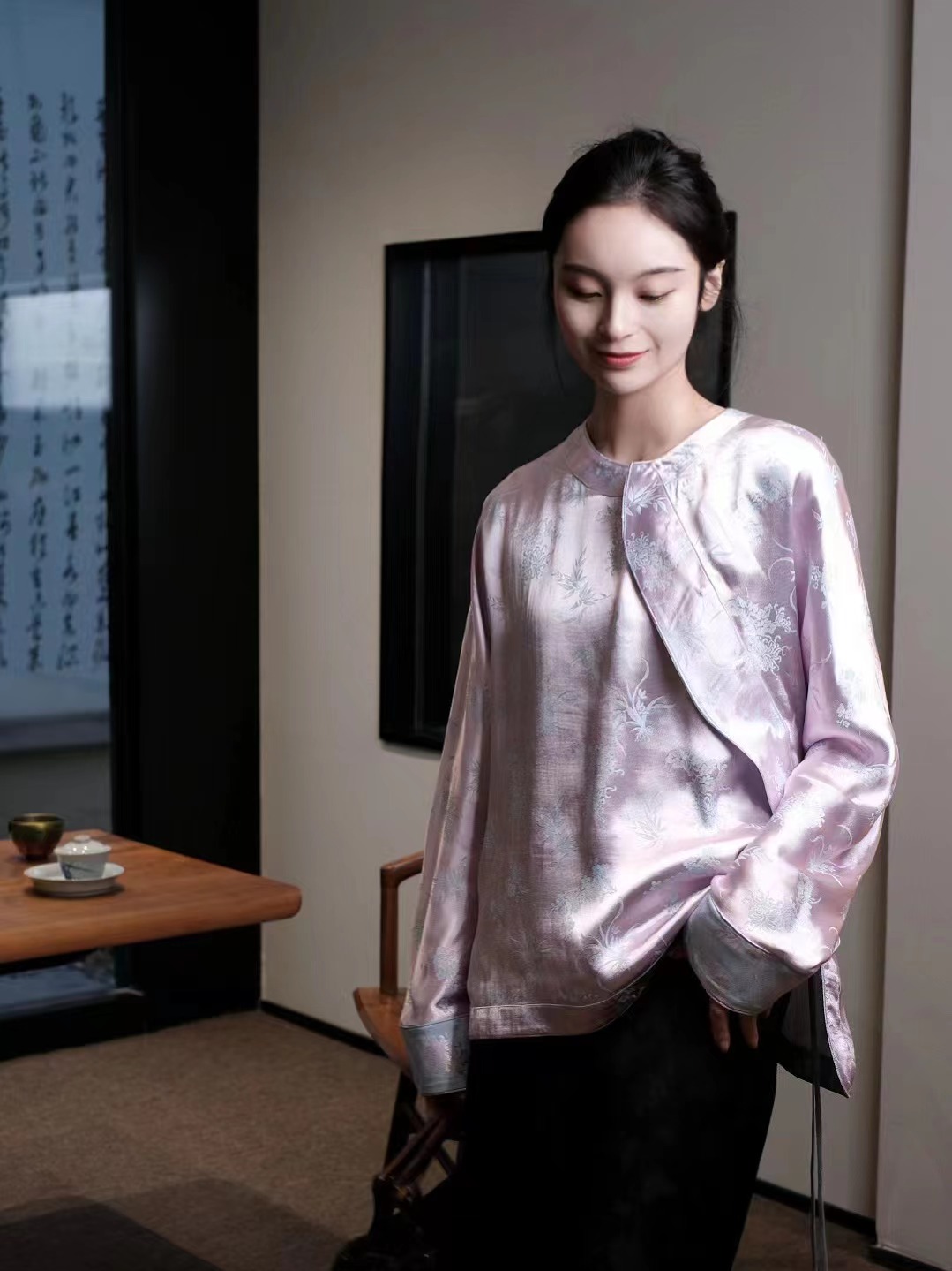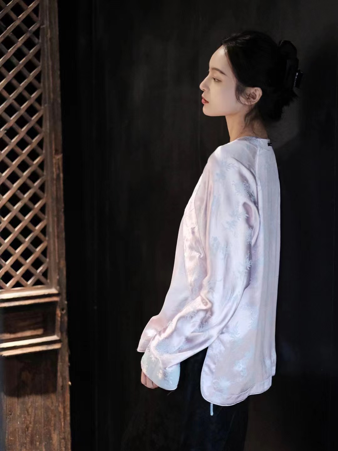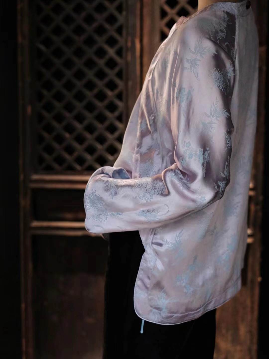 盛唐牡丹 |真丝提花斜襟上衣(蓝粉两面穿)