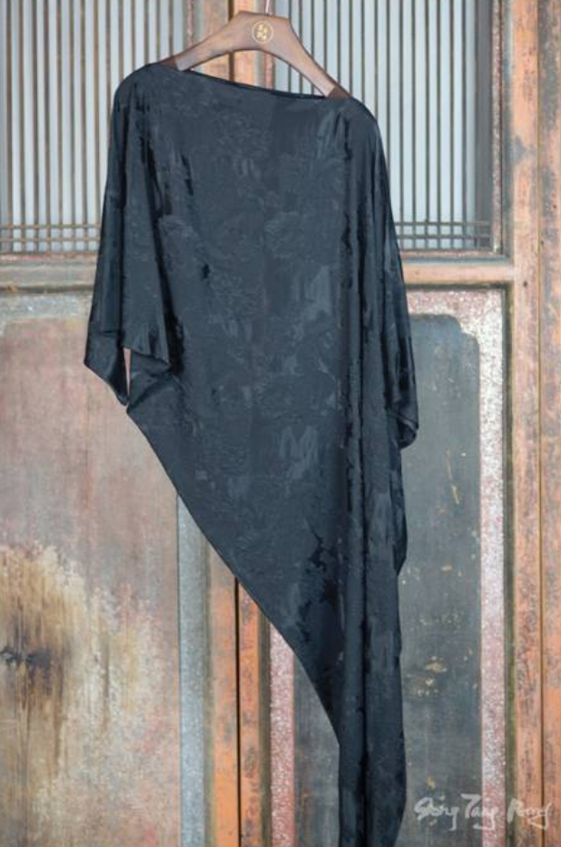 盛唐牡丹 |真丝压花圆领女上衣-黑色