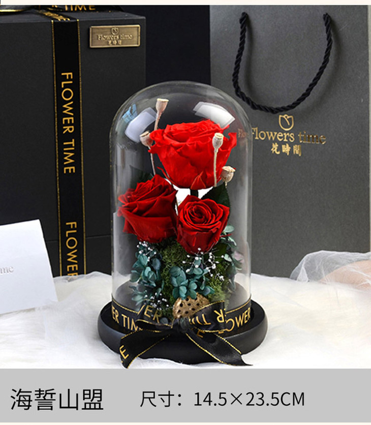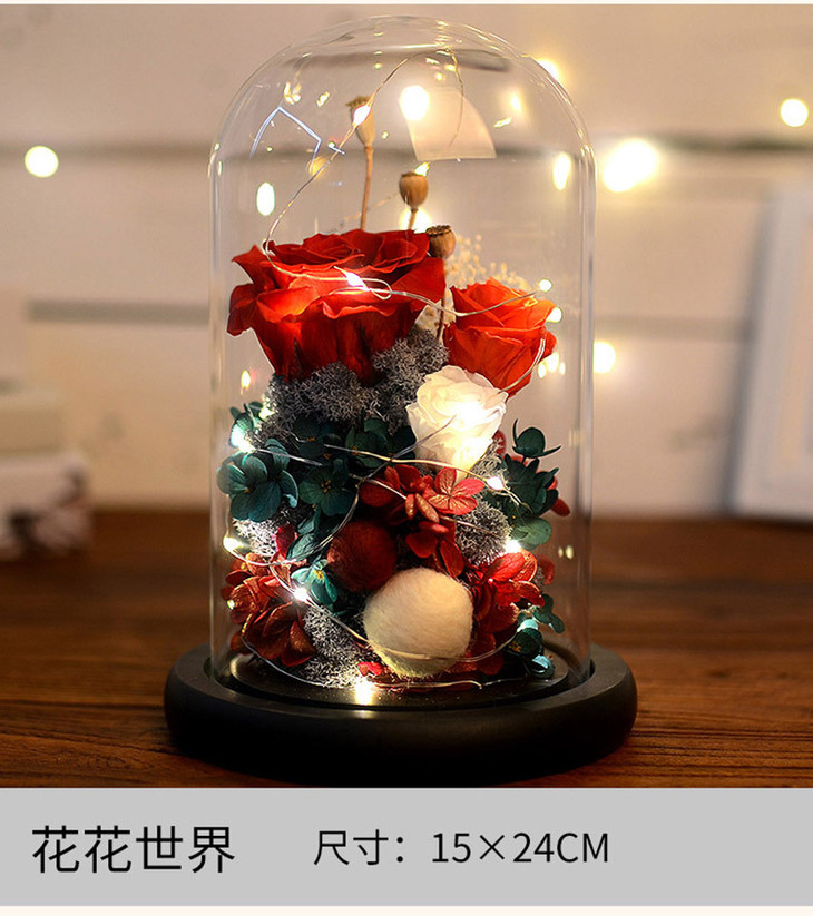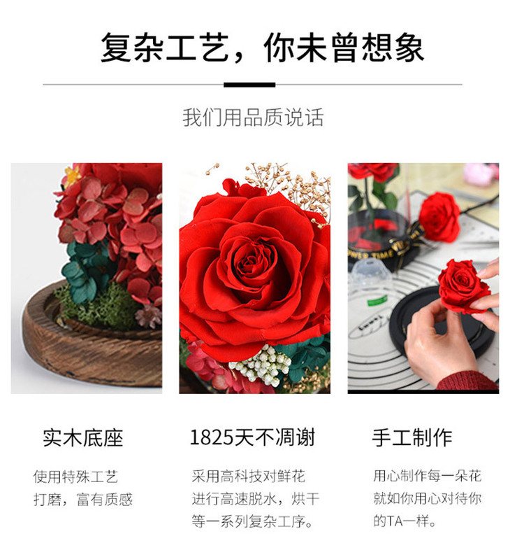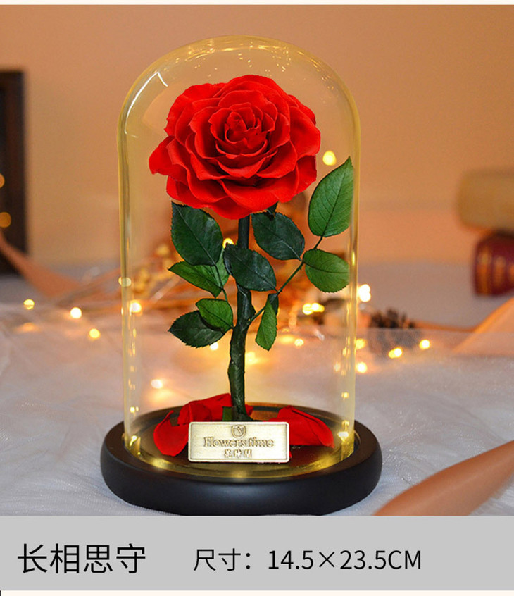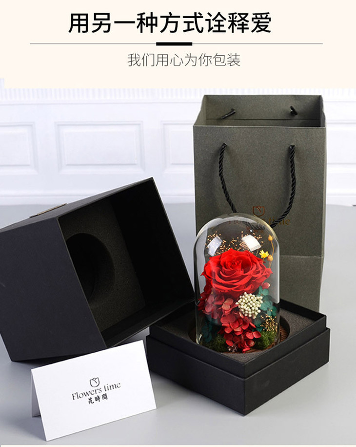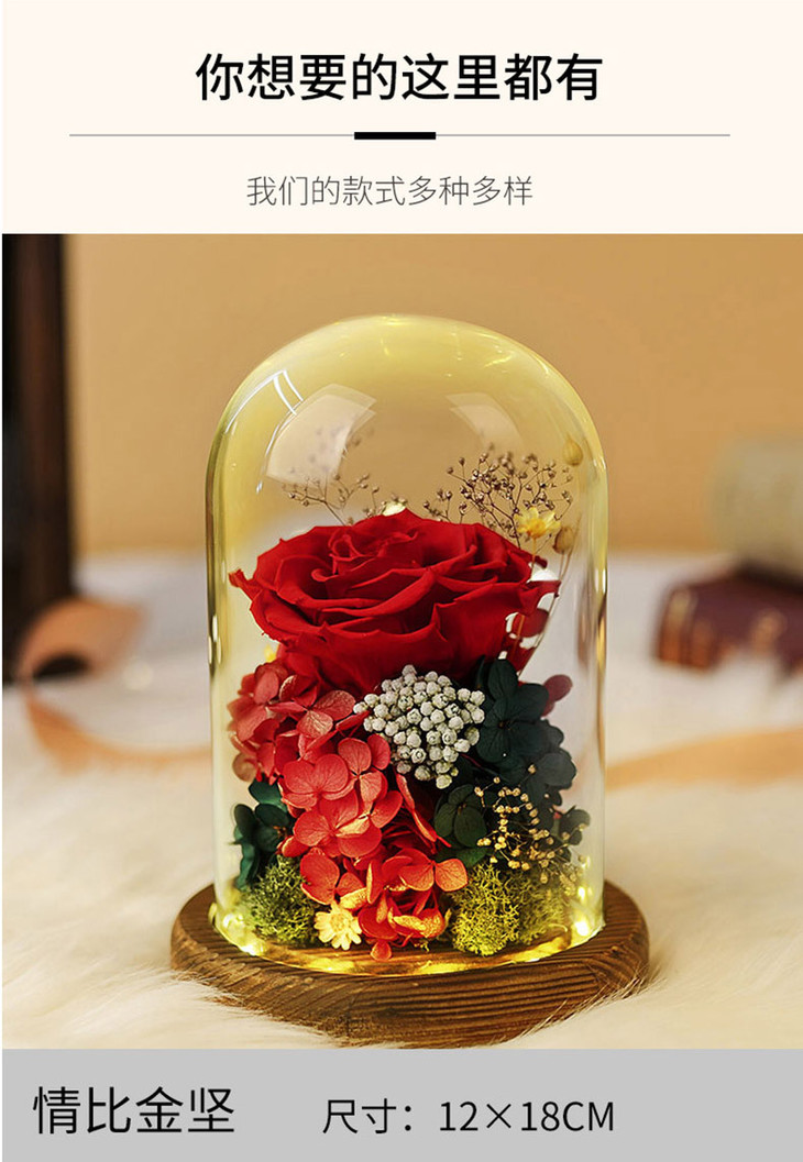 【礼物】永生花玫瑰七夕情人节创意礼物永生花玻璃罩礼盒装饰摆件
