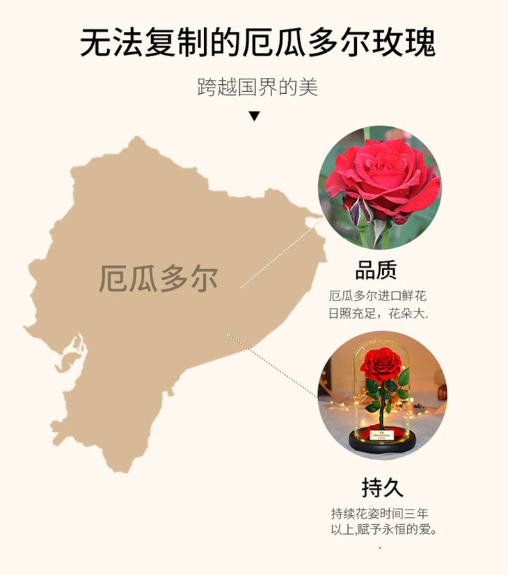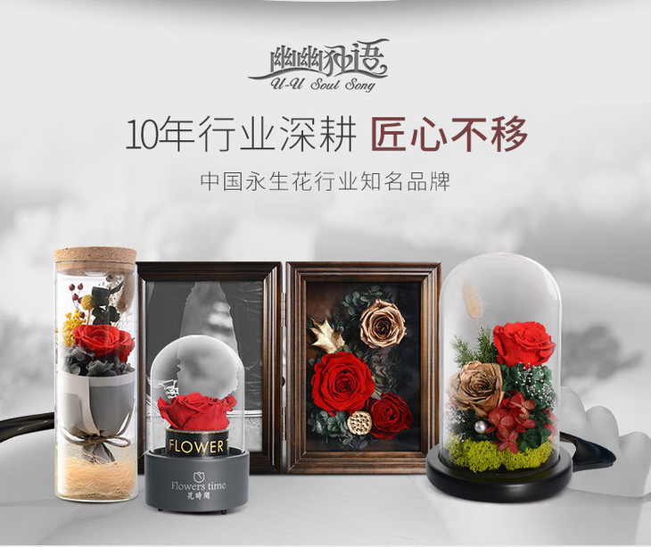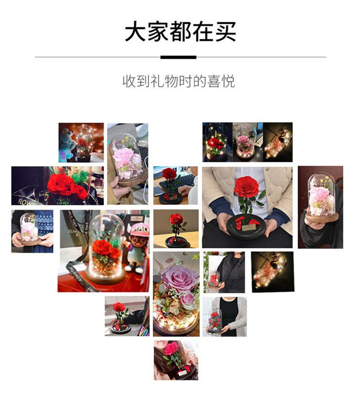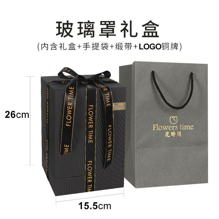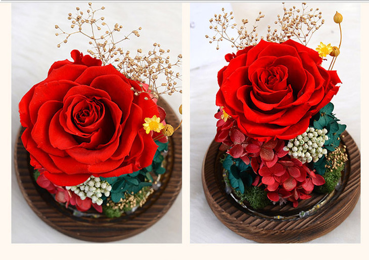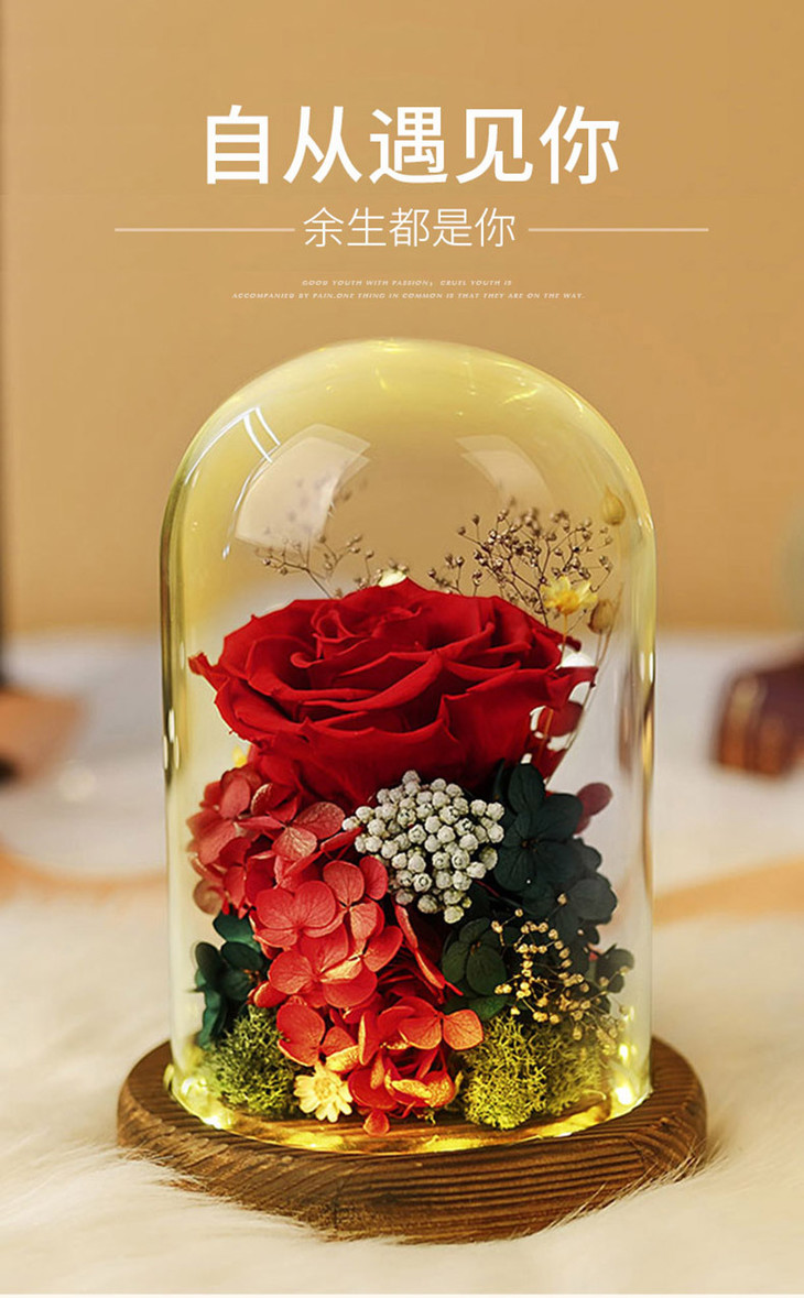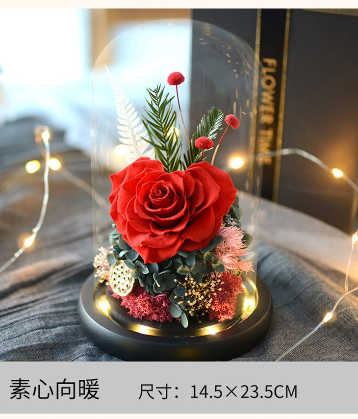 【礼物】永生花玫瑰七夕情人节创意礼物永生花玻璃罩礼盒装饰摆件