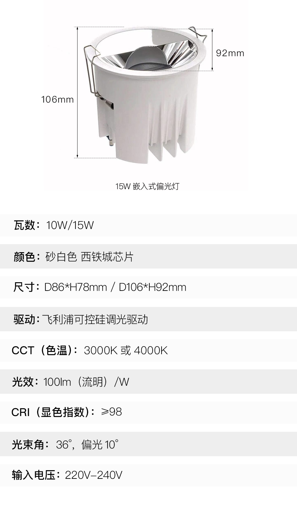 【清仓折扣】伽罗 JALO 98显指嵌入式偏光15W射灯