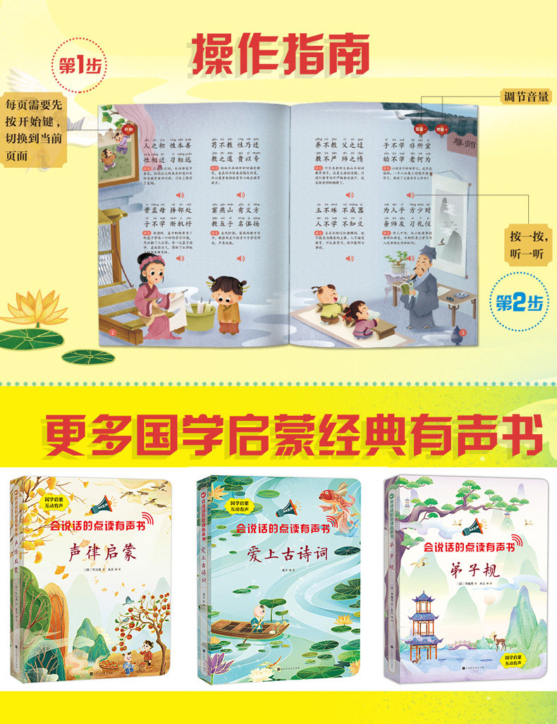 2本 会说话的唐诗三百首 幼儿早教有声播放书点读发声书 正版全集注音版大字绘本三字经国学启蒙手指点读本 充电带拼音完整版300首