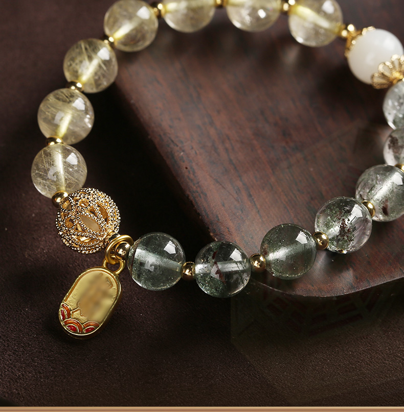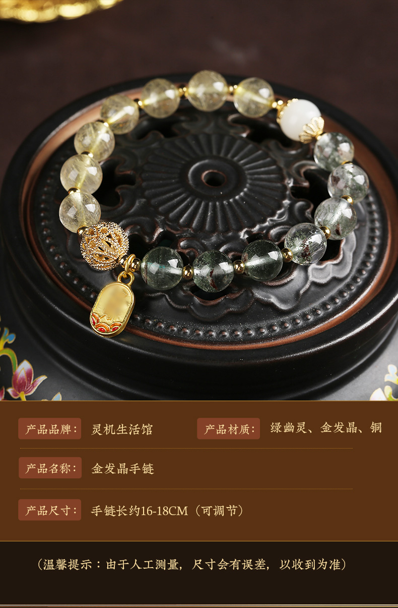 【财】灵机生活馆 财富之石 绿幽灵金发晶手链