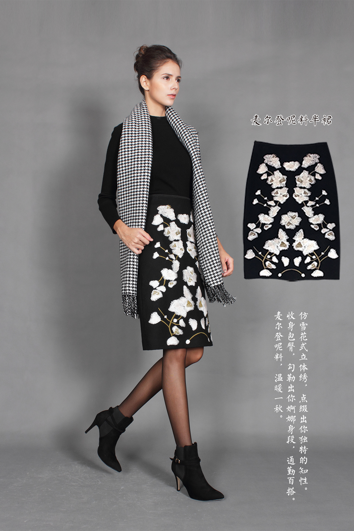 源于公元前5000年乌鲁克雪花石膏大瓶的雪花绣,绝对配得上你的艺术眼光。仿雪花式立体绣,点缀出你独特的知性。收身包臀,勾勒出你婀娜身段,通勤百搭。