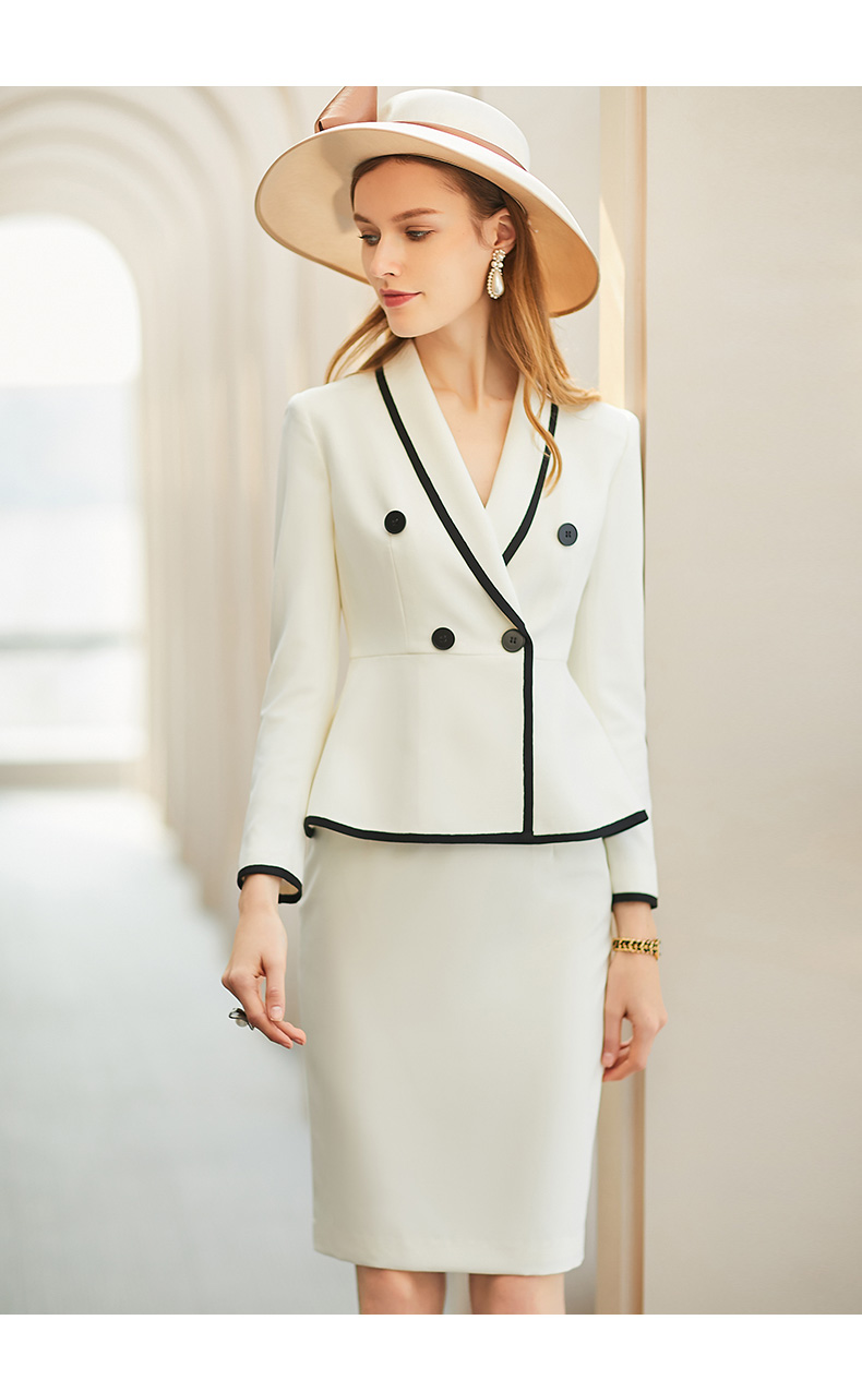 AD春季高端名媛职业套装时尚白色小香风收腰女装气质女神范OL套裙