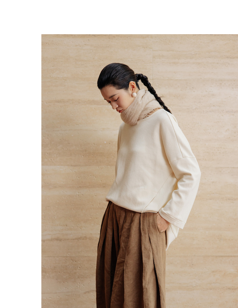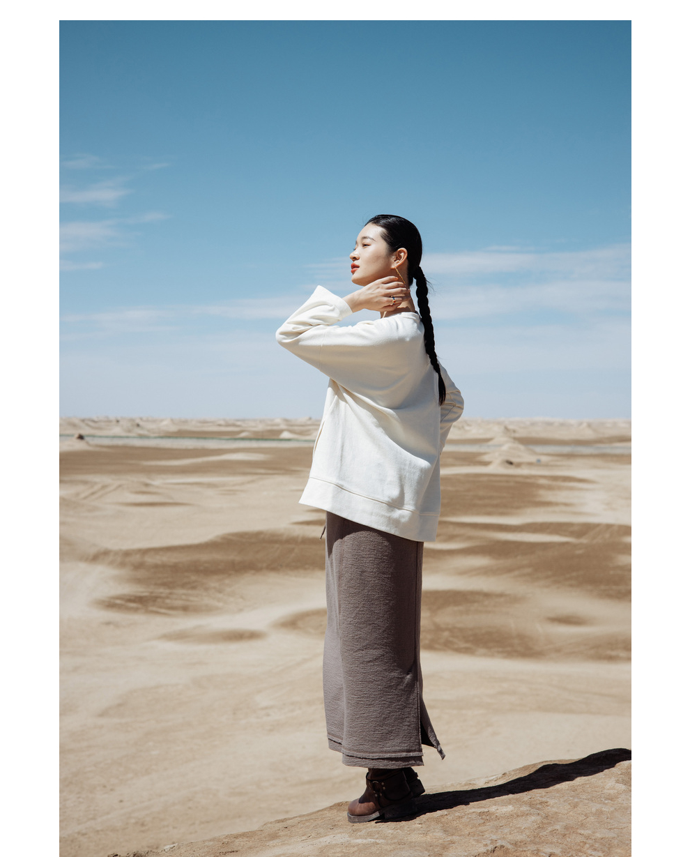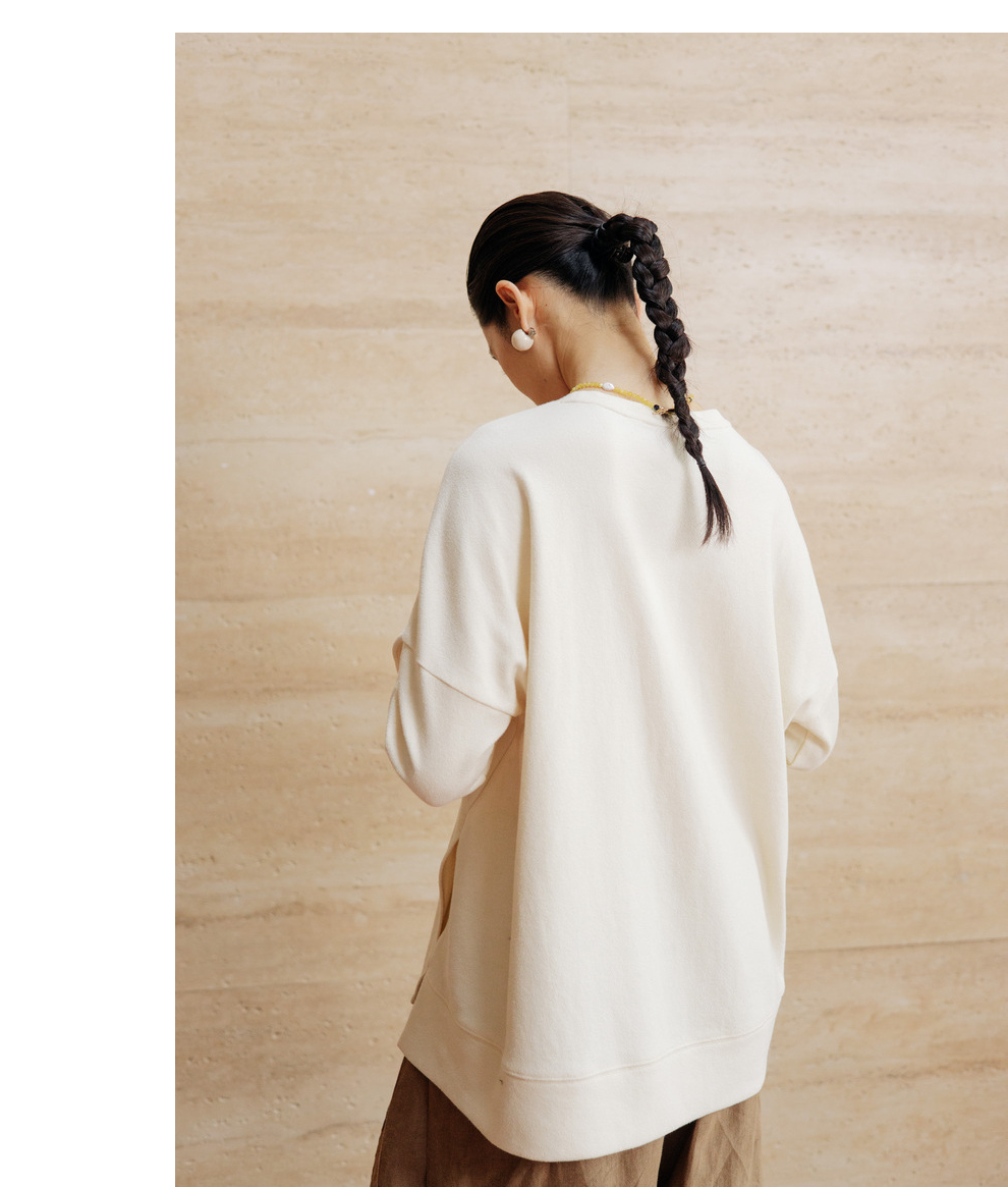 绽放712朵/早秋宽松设计感开衩圆领落肩*精纺长绒棉中长款卫衣