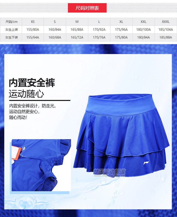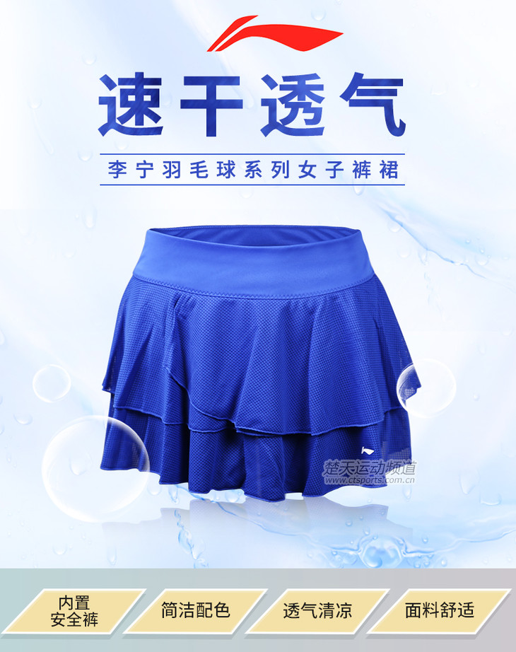 李宁 女款羽毛球裤裙 运动裤裙 ASKL112-3 安全裤设计【特卖】