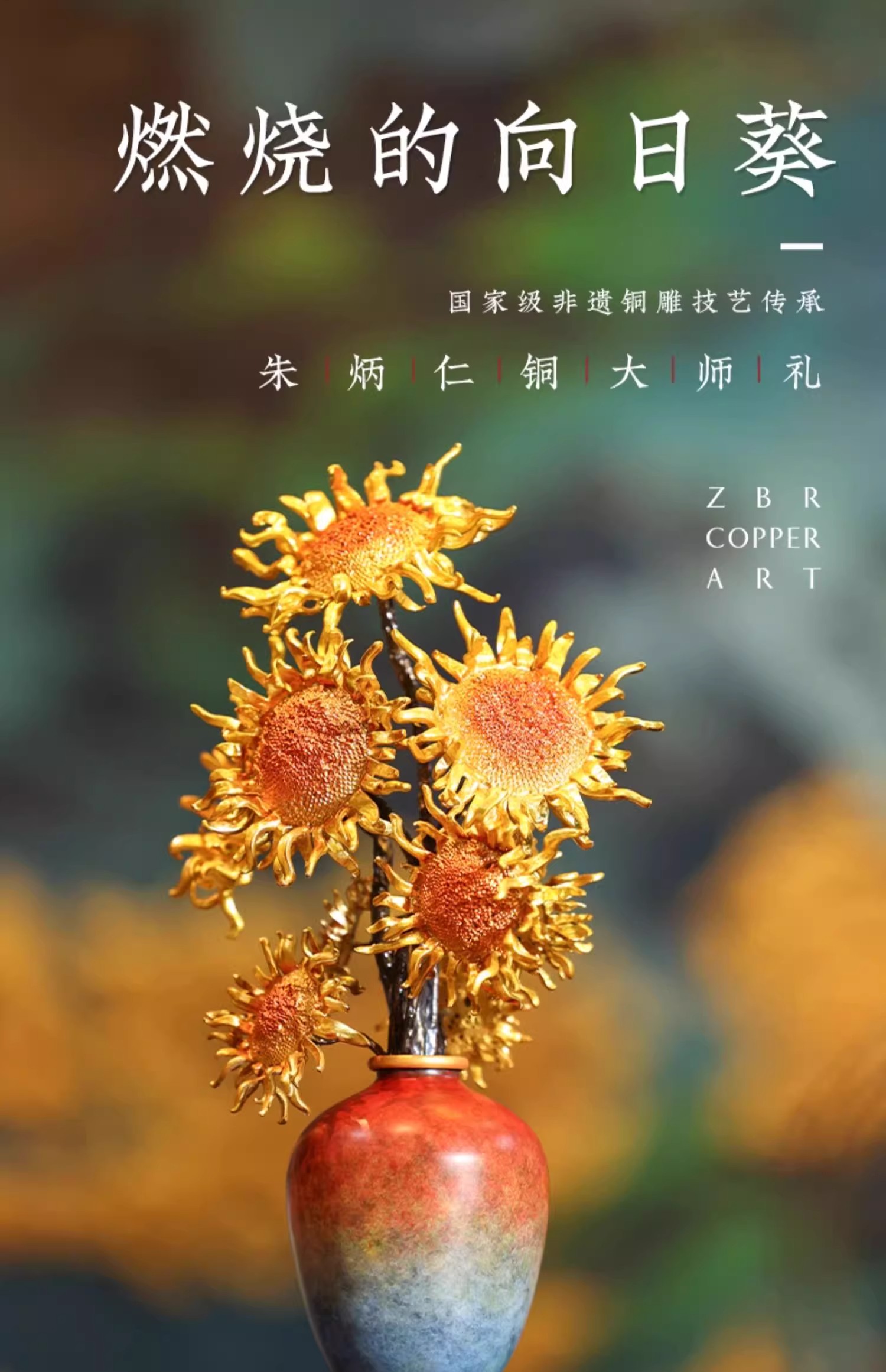 【预售】朱炳仁 丨《燃烧的向日葵》文创版 黄铜摆件 家居玄关装饰电视柜桌面艺术摆件 付款成功后7-15天发出