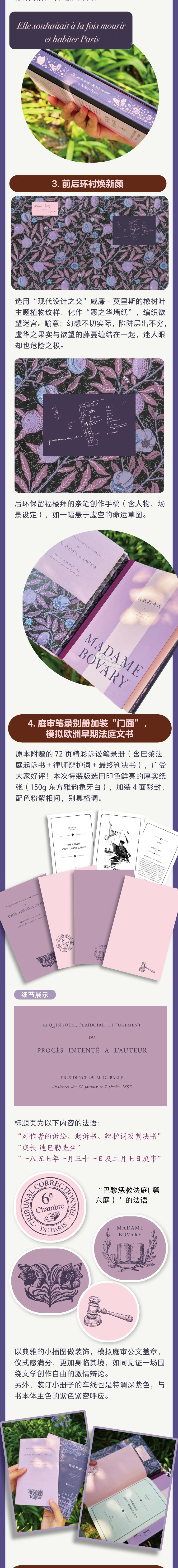 ·庭审笔录别册,采用美观、耐保存的车线装订,包含巴黎法庭起诉书+律师辩护词+最终判决书,身临一场围绕文学创作自由的激情辩论。