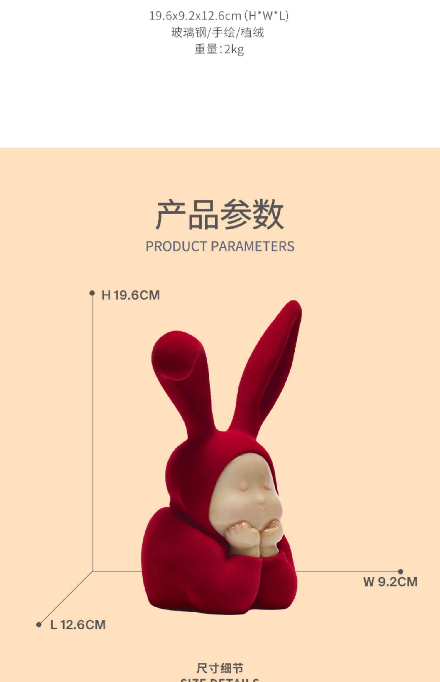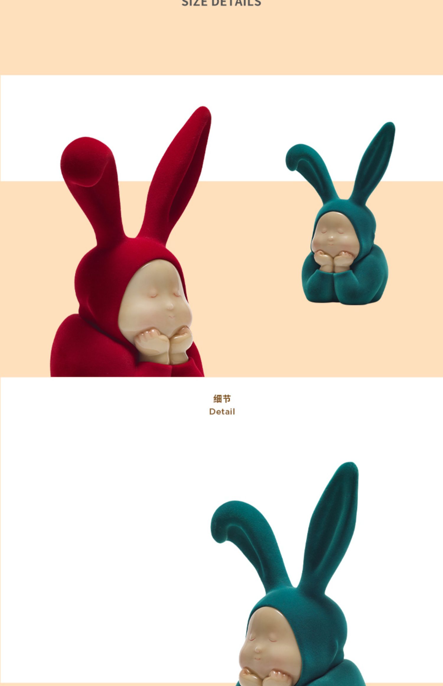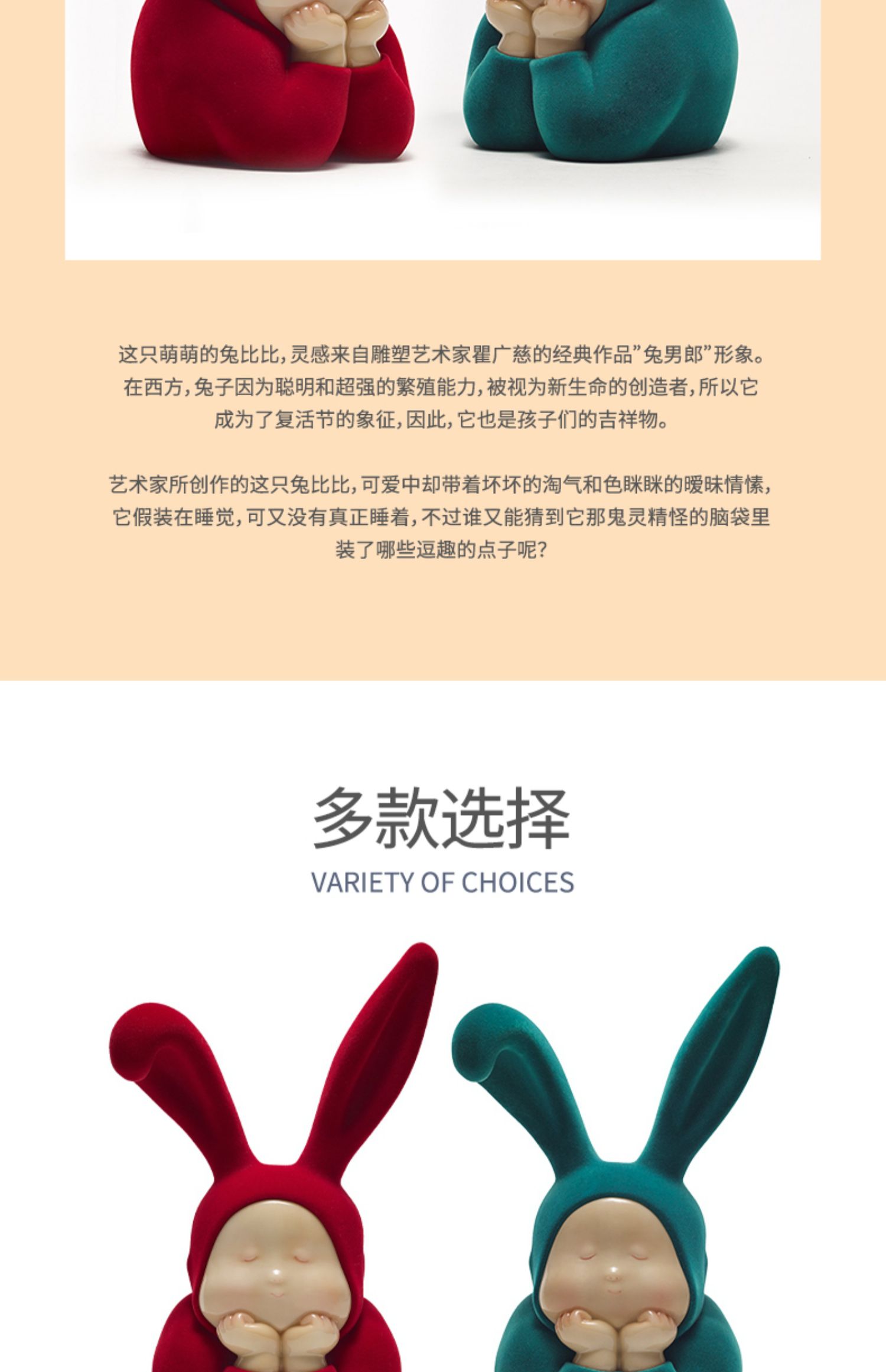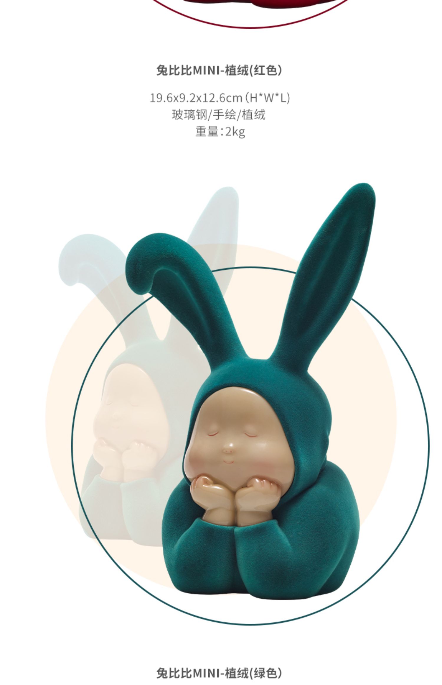 稀奇艺术儿童卡通《兔比比》植绒桌面摆件家居装饰雕塑轻奢礼物
