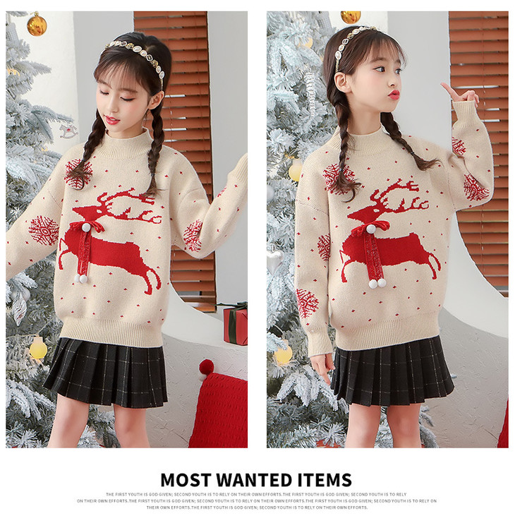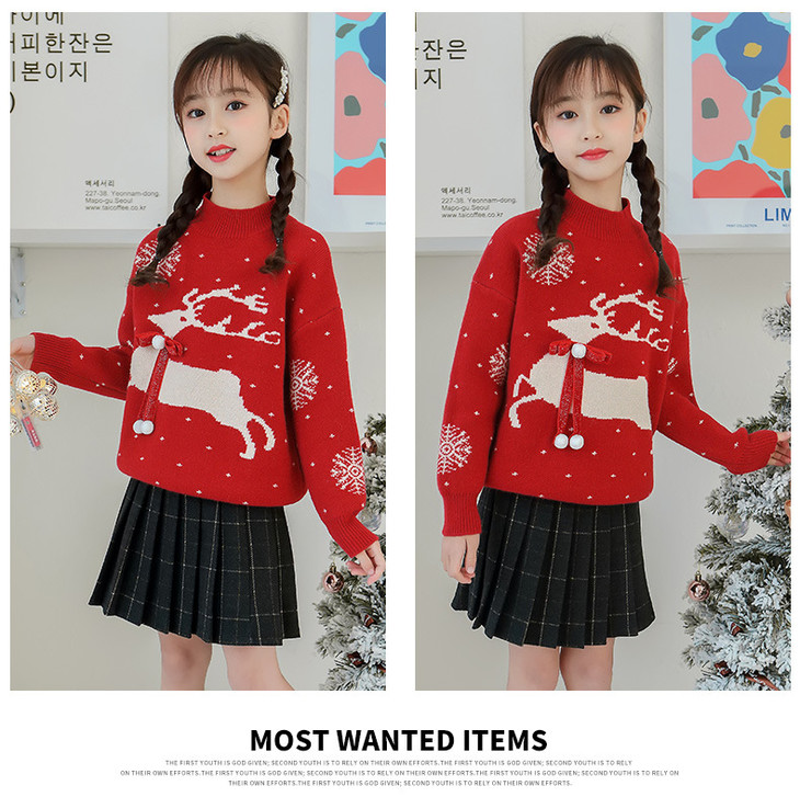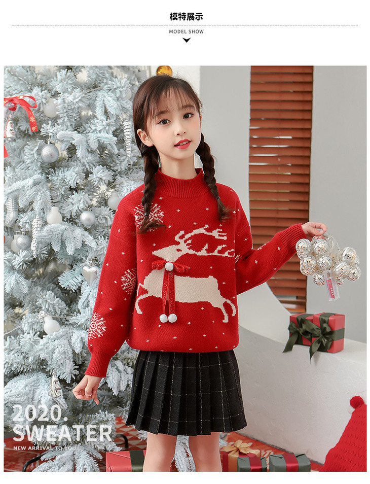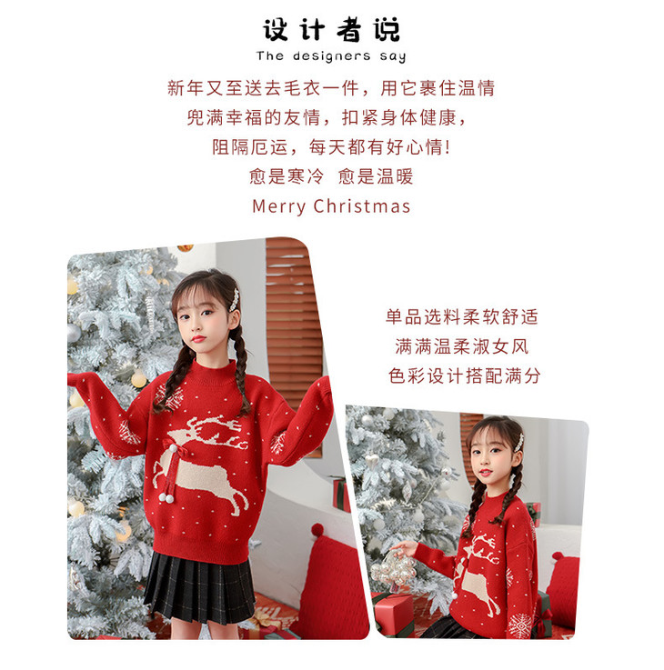 【儿童红色新年毛衣】宝宝拜年服女童毛衣女大童2020年新款毛衣
