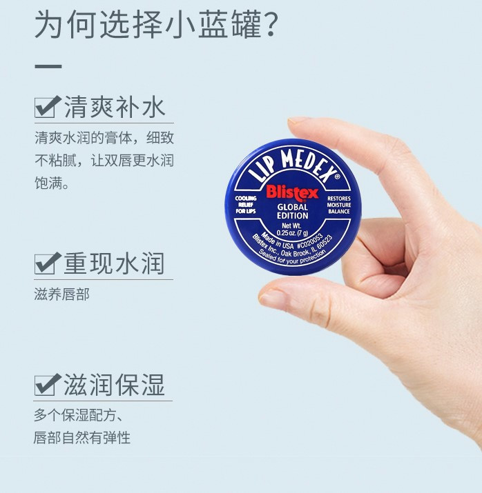 Blistex/百蕾适碧唇小蓝罐瓶润唇膏滋润修护保湿男女舒缓唇膜唇霜五款组合任选