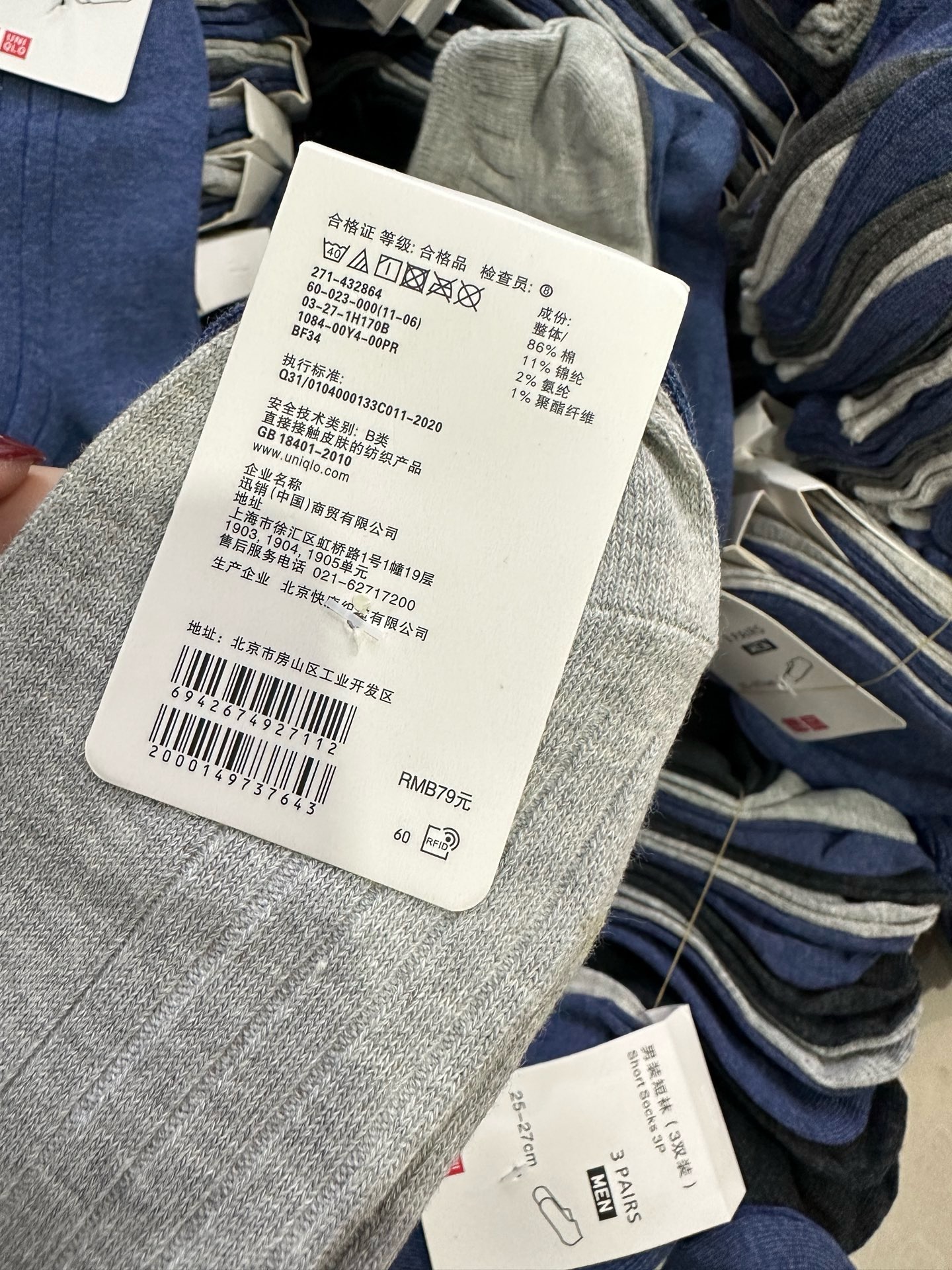 U衣库原单男士低筒袜