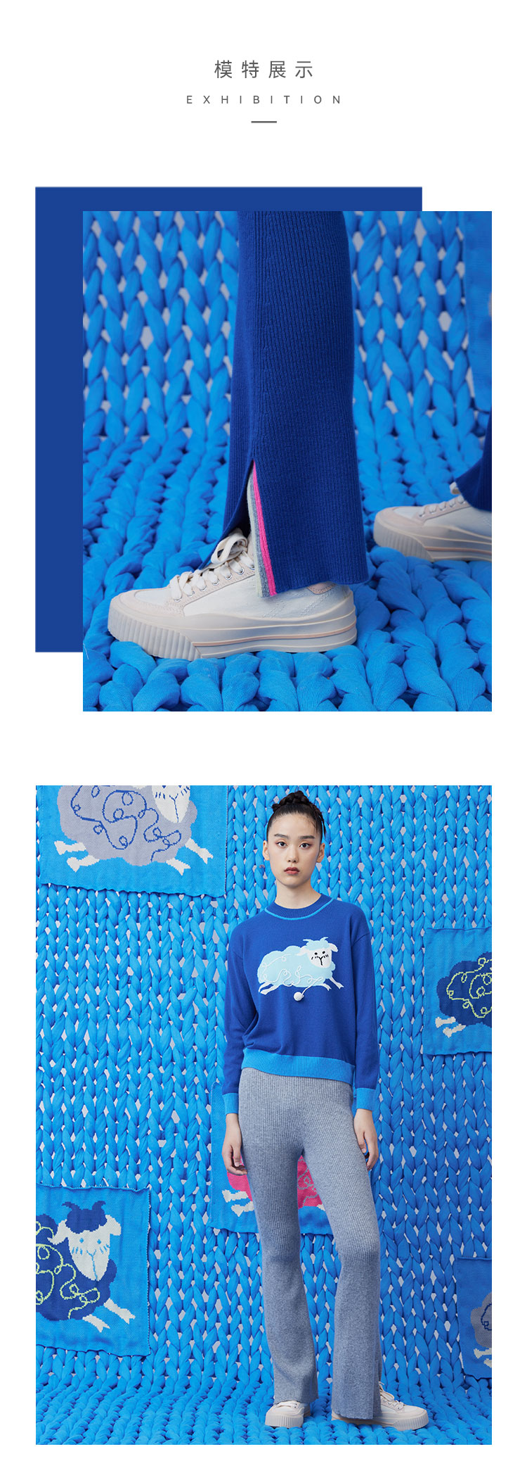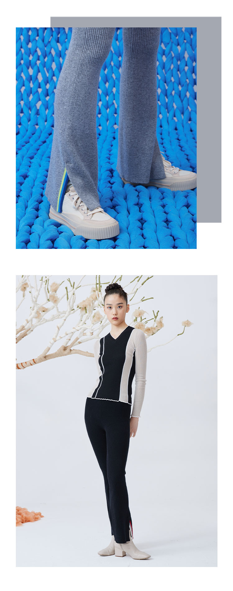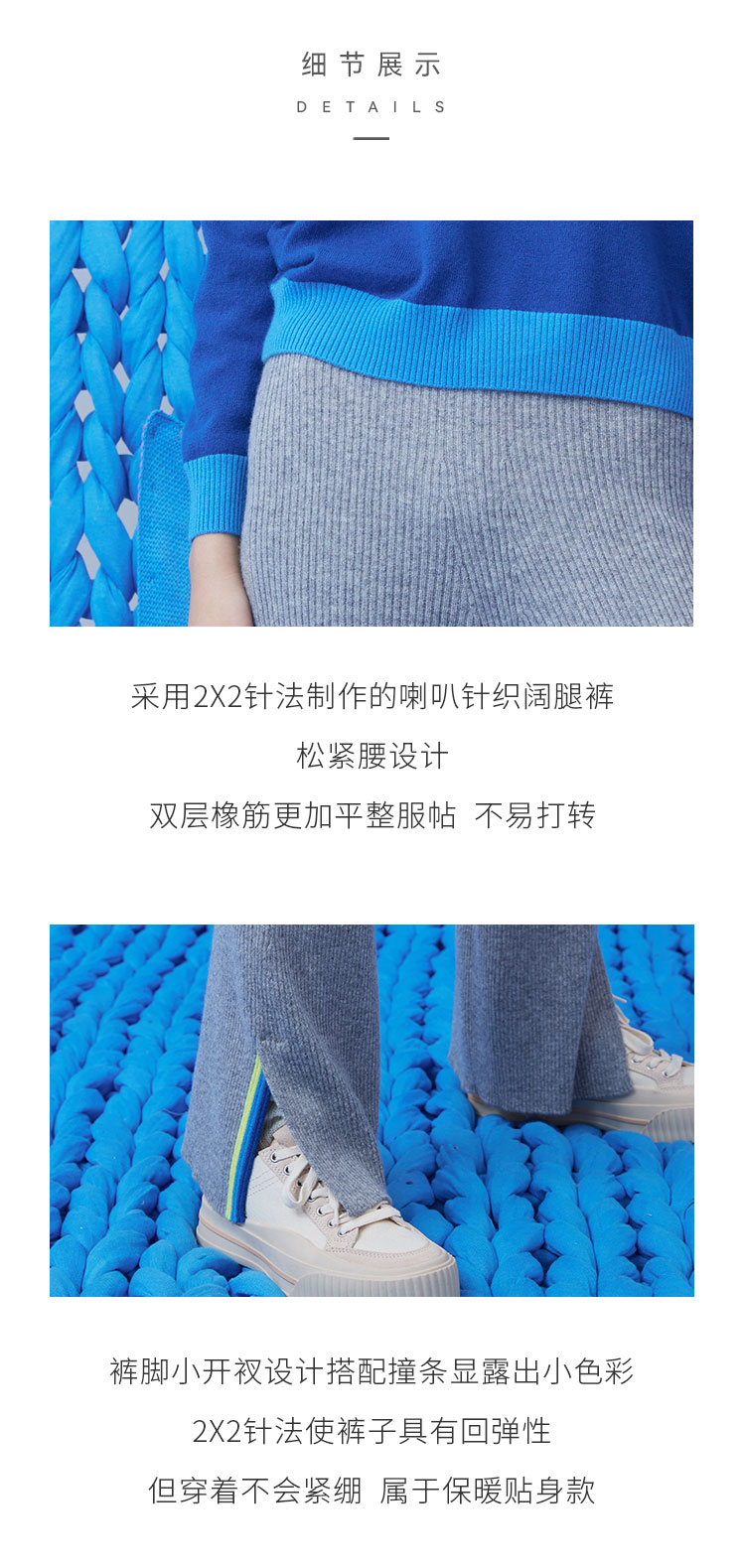 侧开叉撞色针织羊绒喇叭裤 SJF93K302N