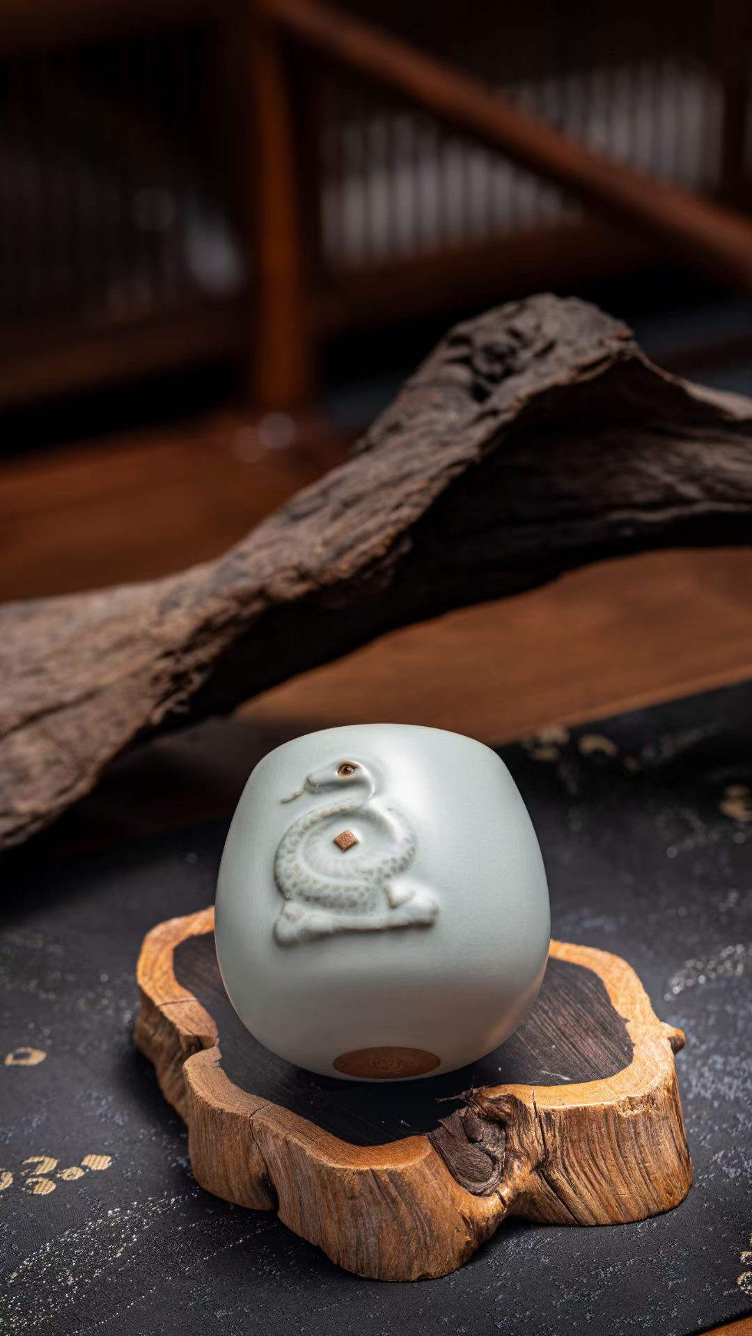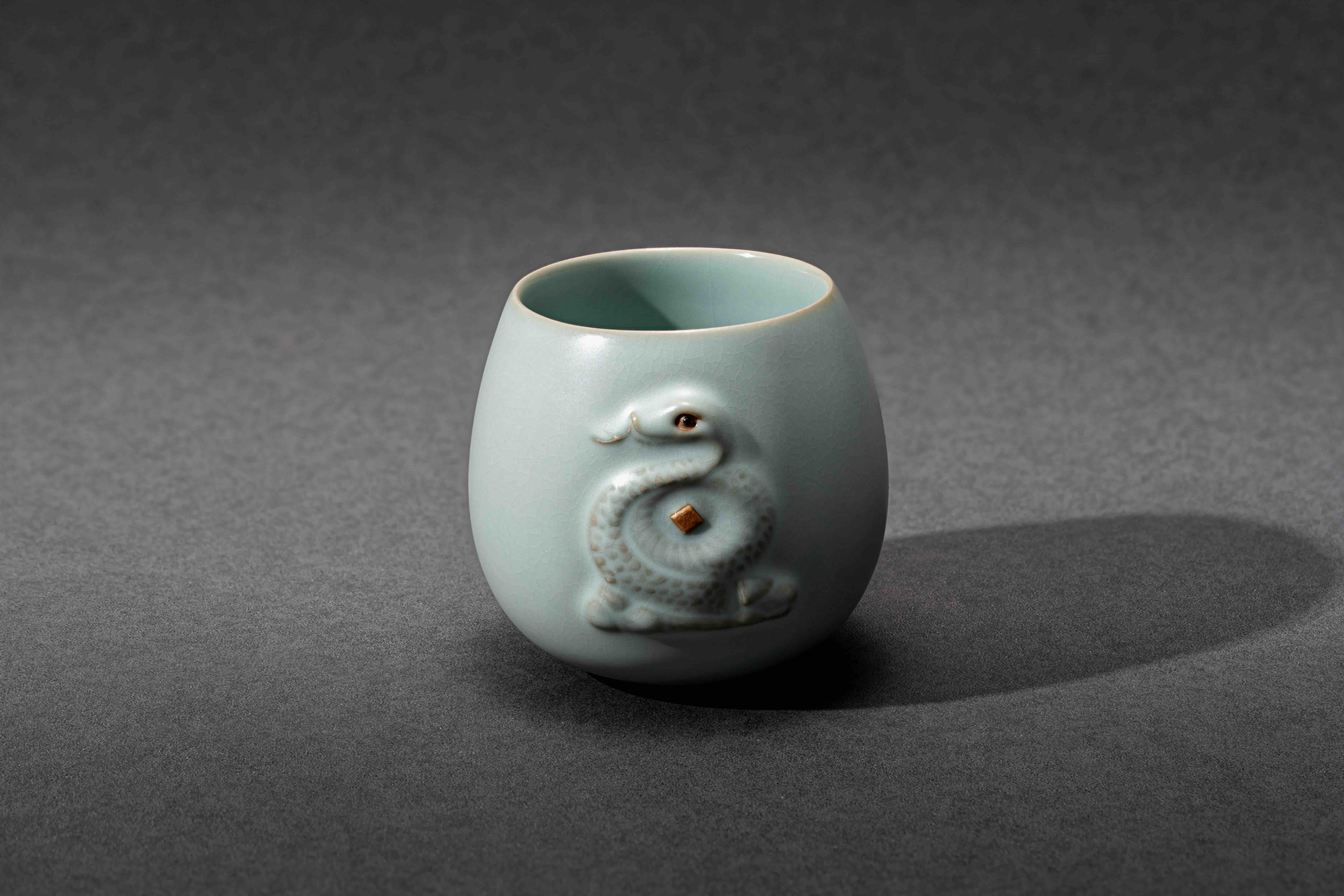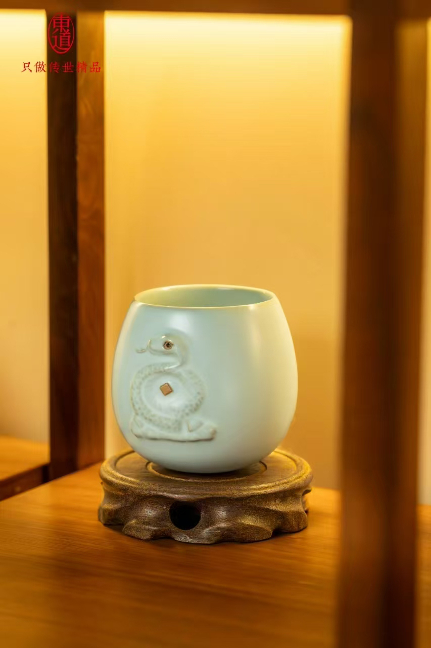 雅器 |年度重磅蛇年生肖作品~东道汝窑·汝蛇杯(天青) 福蛇抱财,屹立不倒~招财汝蛇杯 12月23日全球首发