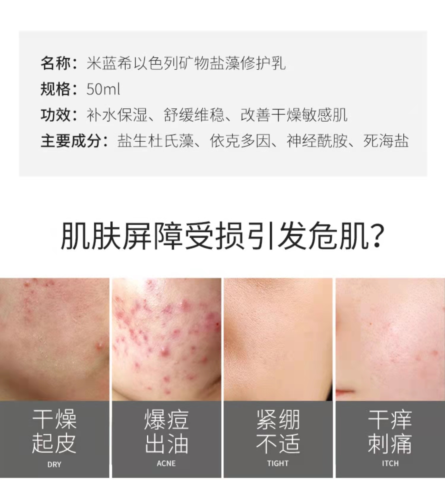 米蓝希矿物盐藻修护乳液 50g 补水保湿