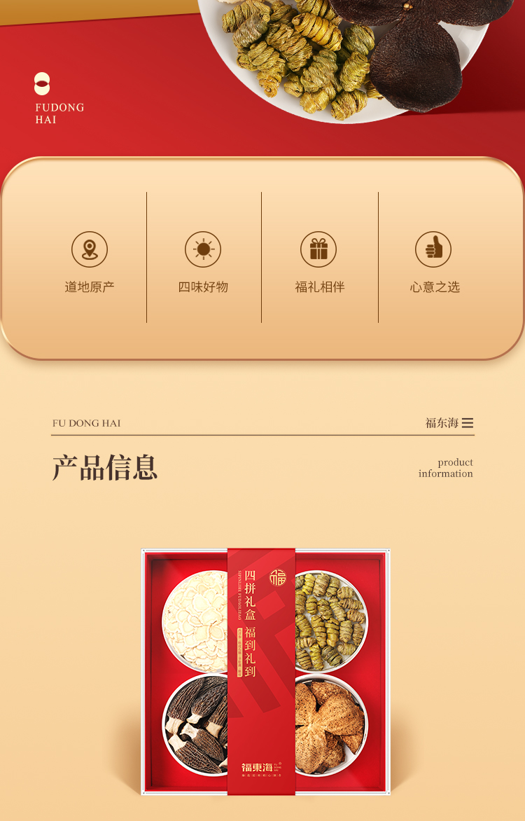 福东海 西洋参片铁皮石斛羊肚菌陈皮 四拼福到礼盒160克 精选原材 花旗参含片送礼长辈父母滋补品