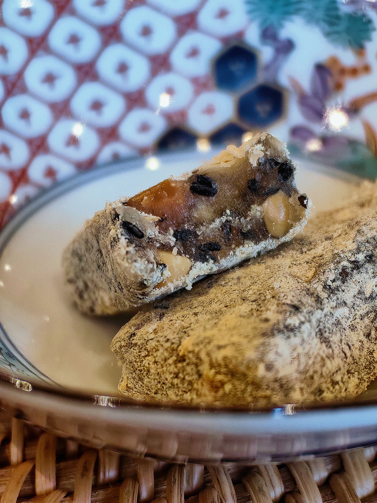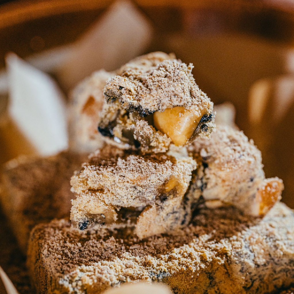 朴实的复古纸筒内,装着单独包装的黄豆麻糕,取出一块咬上一口,软乎乎、糯唧唧、脆生生、香喷喷。用手轻轻拉开,晶莹剔透的糕团紧紧裹着饱满的花生与芝麻,微带着湿润质地,豆面的酥香与坚果的香脆在口中交织,低甜度也恰到好处,刚开始觉得,一般啊,但多嚼几口,就能感受到口感的美妙,让人忍不住一块接一块!