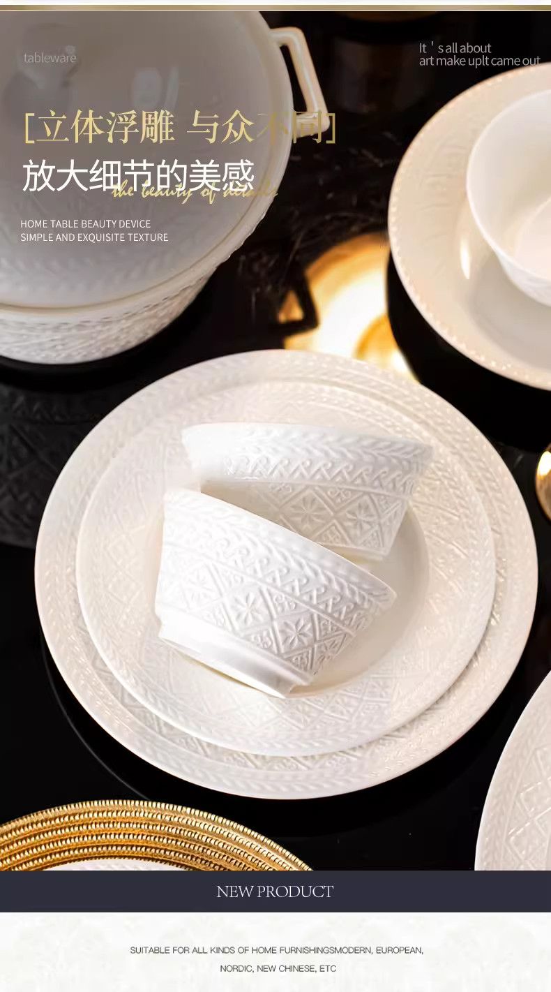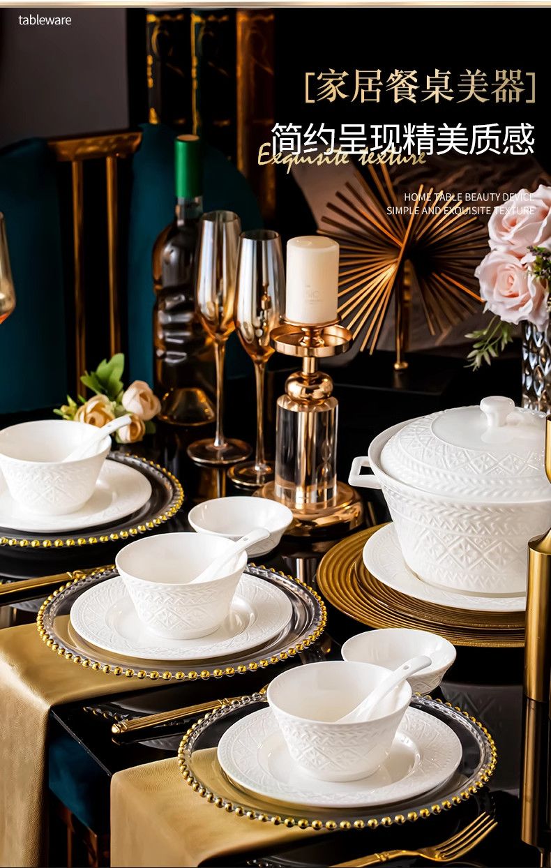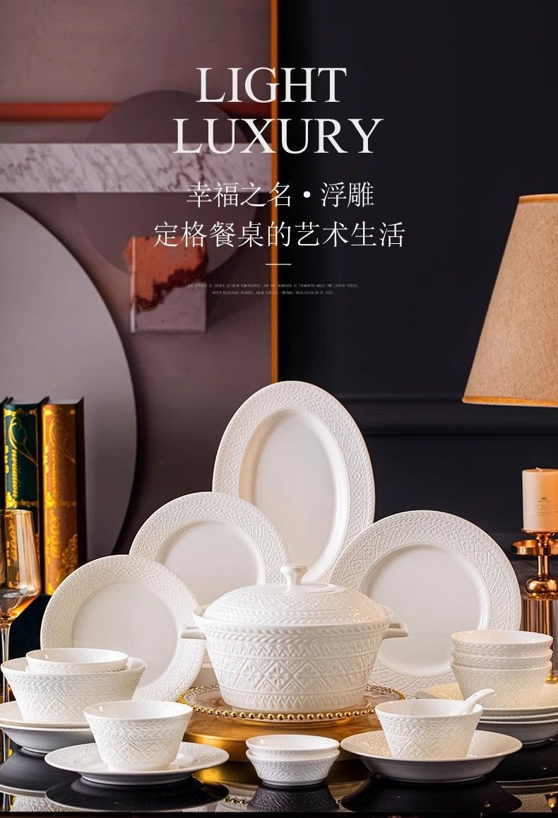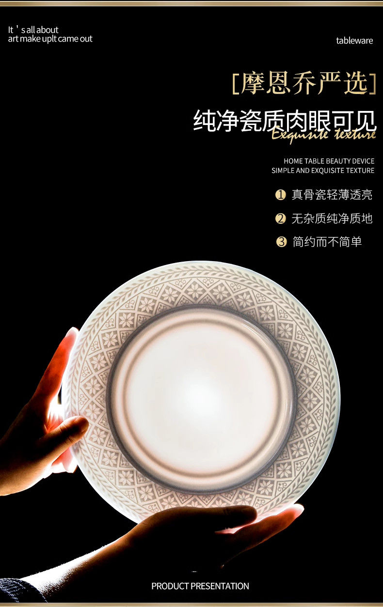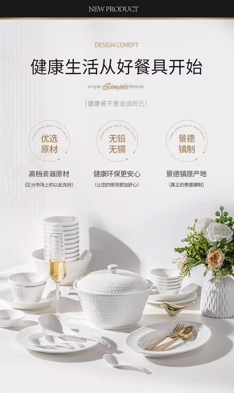 碗碟套装家用釉下彩景德镇陶瓷骨瓷餐具碗盘全套轻奢碗筷乔迁组合