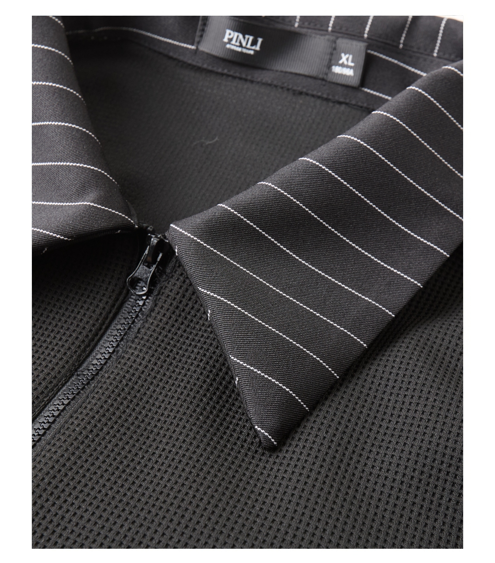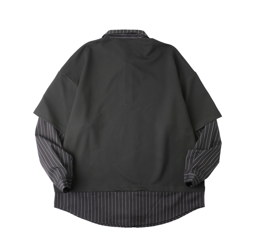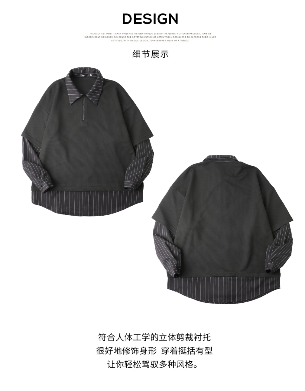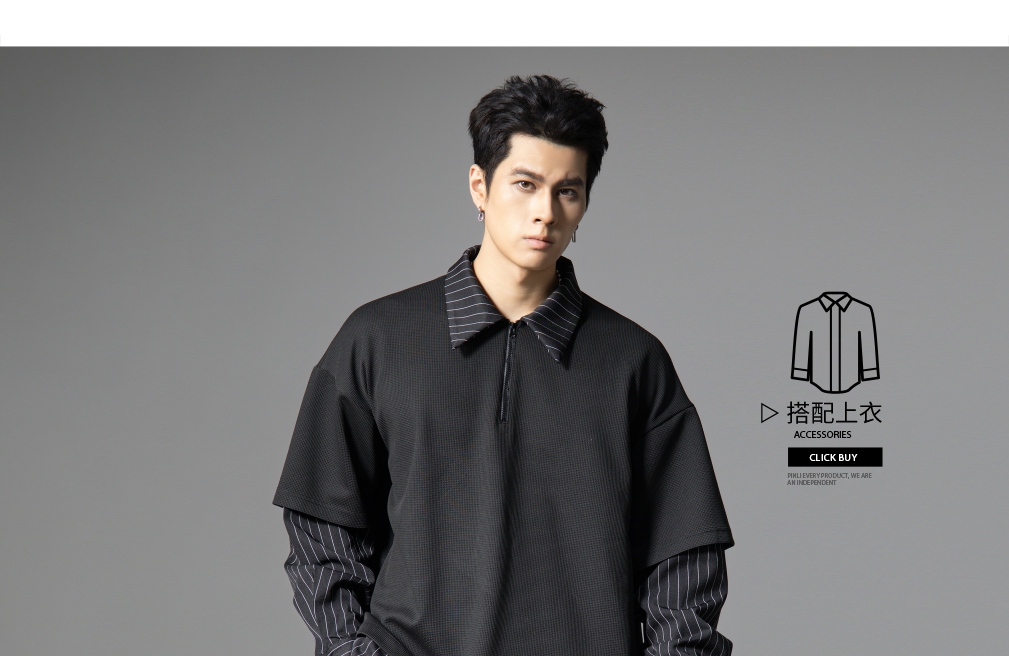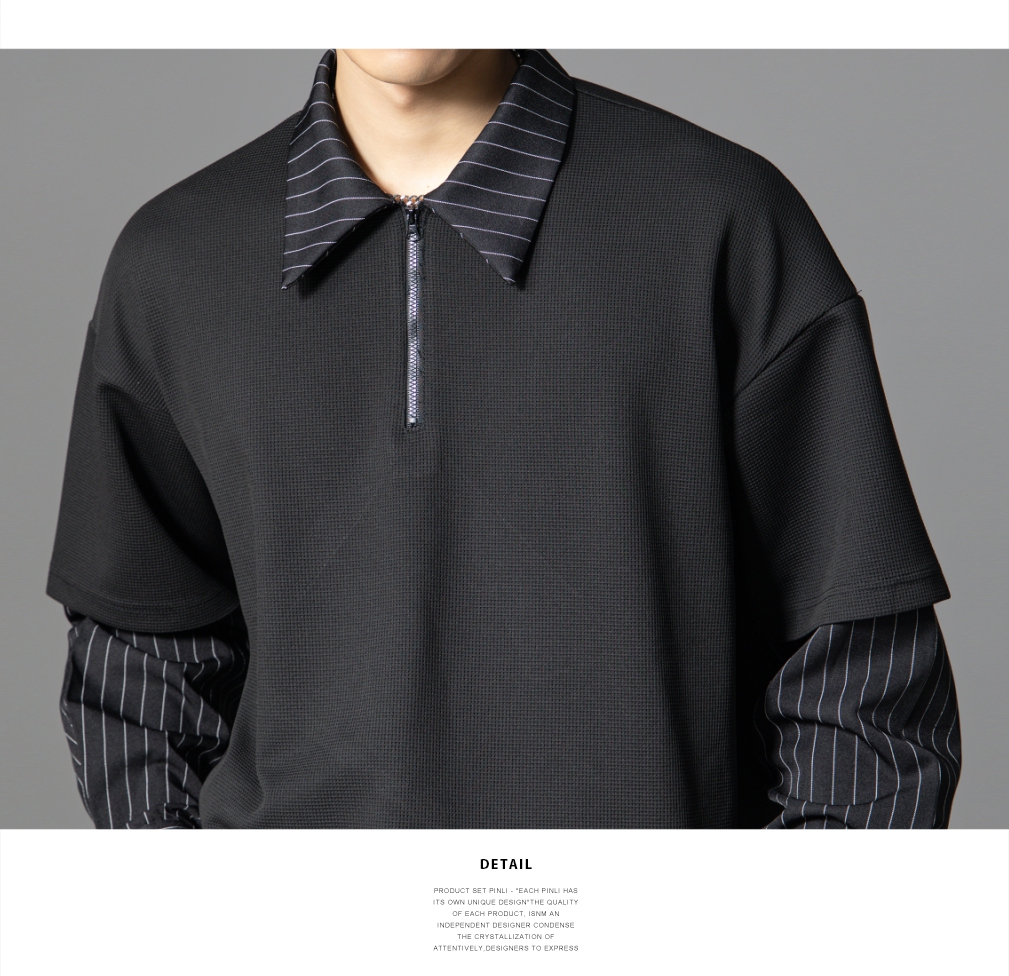 PINLI品立2025秋季新款衬衫领拼接条纹卫衣假两件宽松休闲上衣潮B253109053
