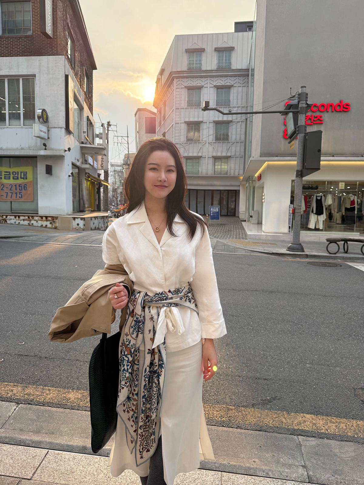 DUO智仙生 黑标 都市丽人的梦想套装 老钱风衣感亚麻衬衫