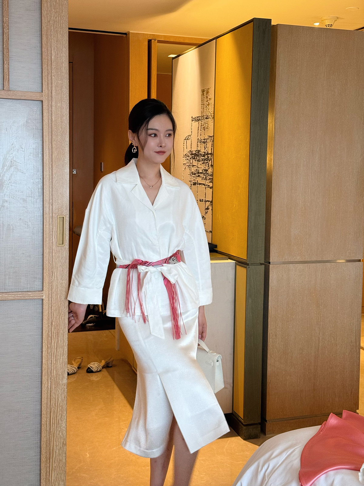 黑标系列淡粉粉双面羊毛定制优雅外套组合吊带连衣裙