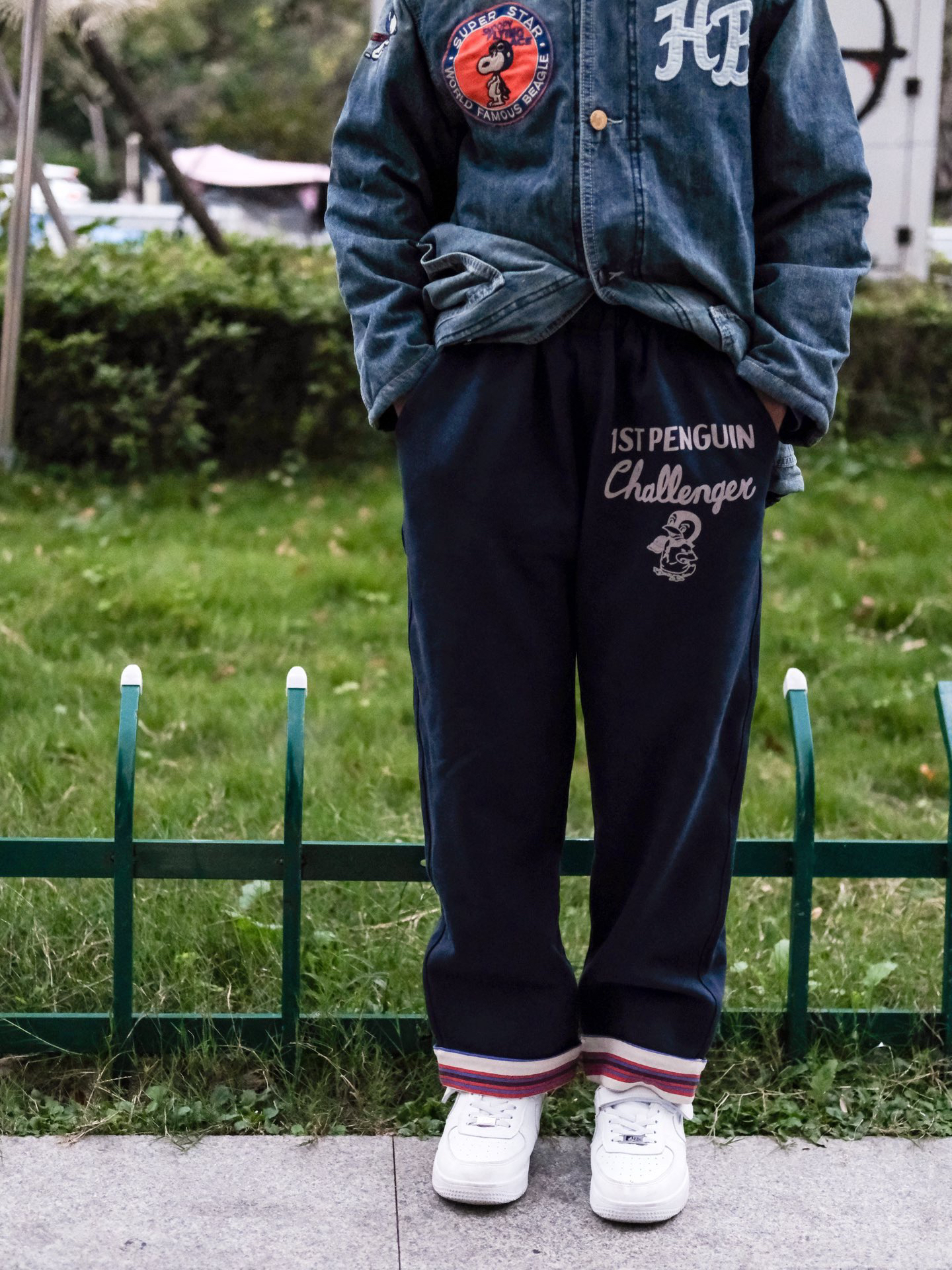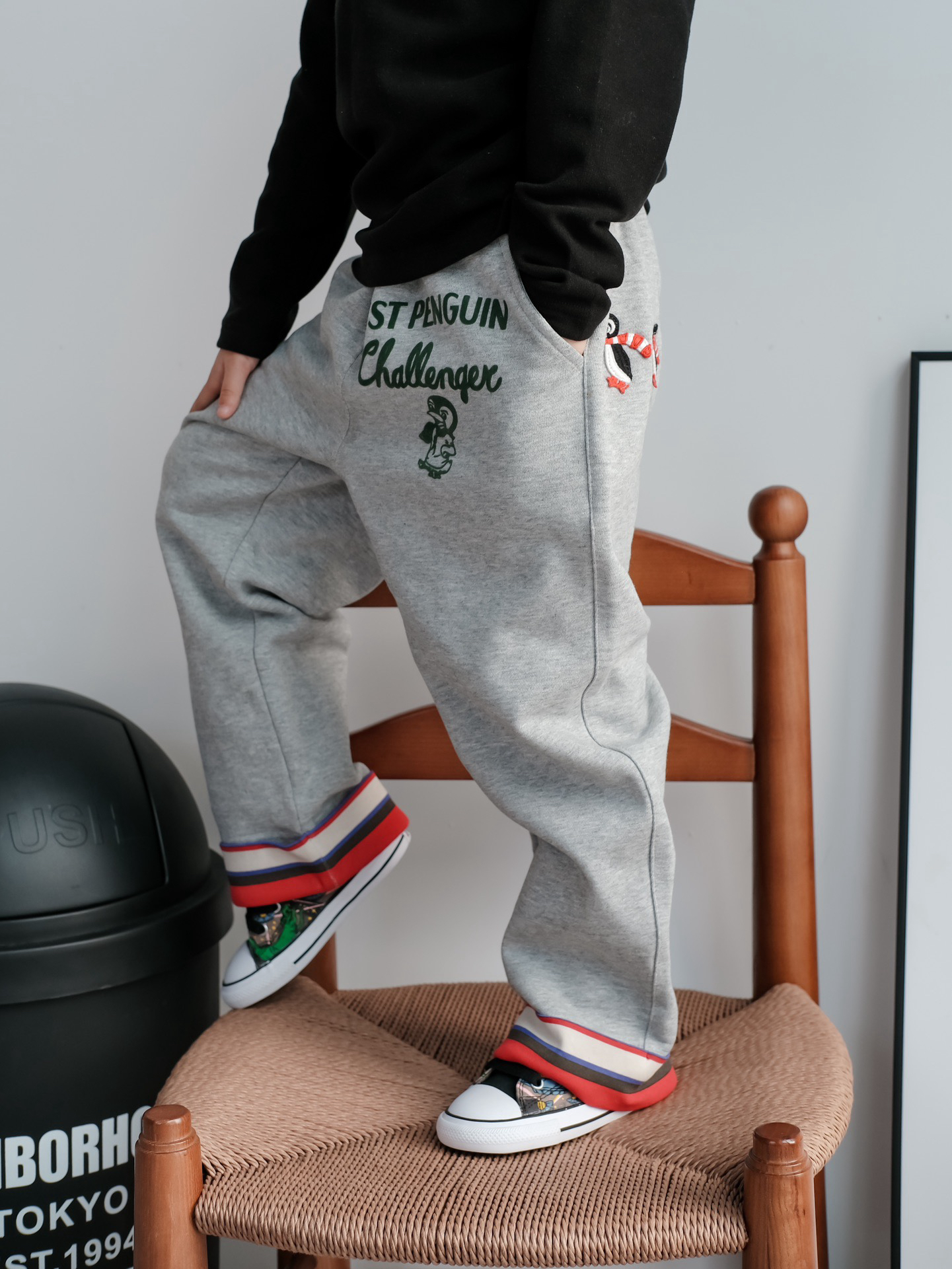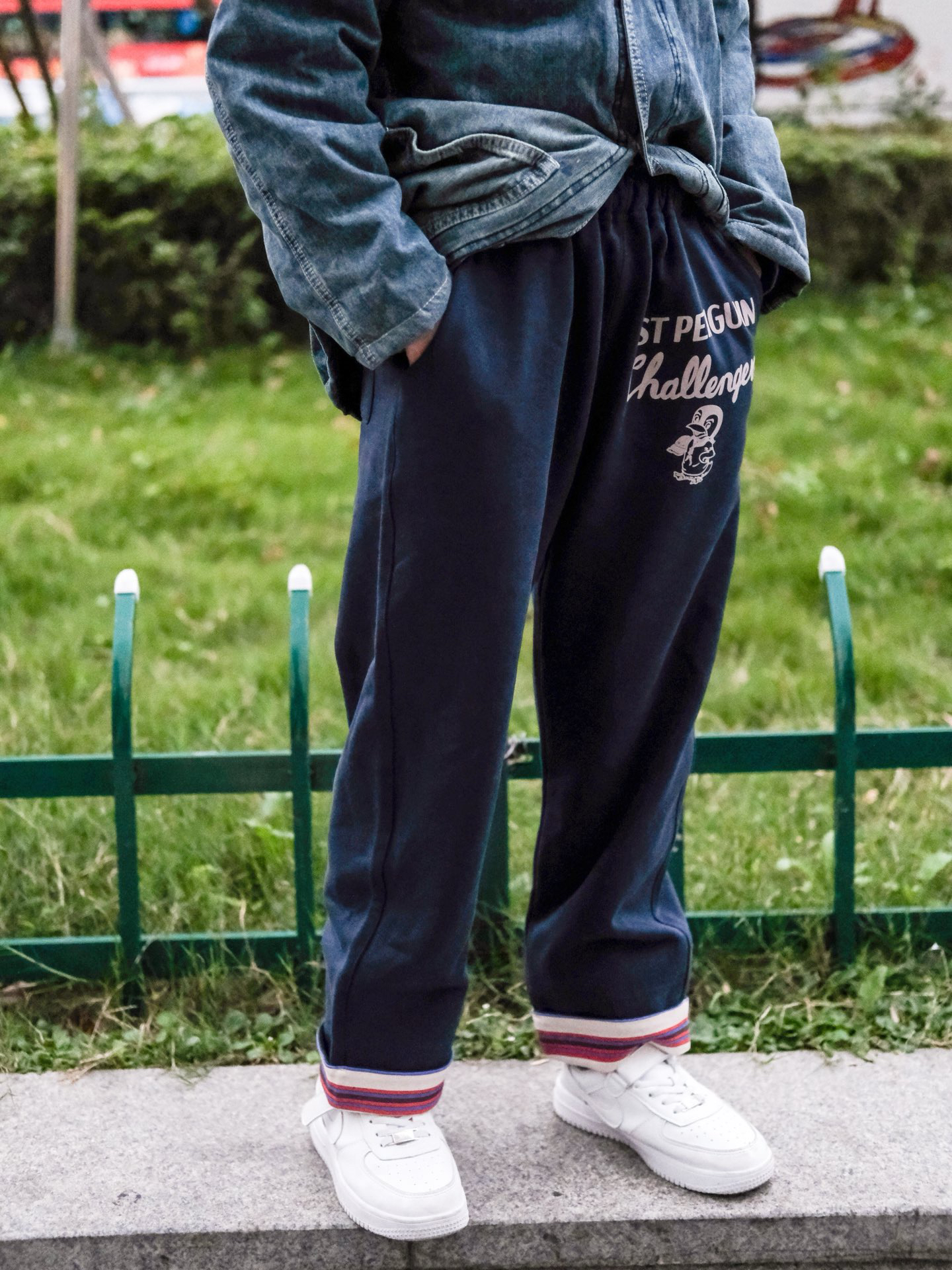 2024秋冬DD同款日系企鹅加绒卫裤!印花立体刺绣彩色条纹轻抓绒运动长裤!