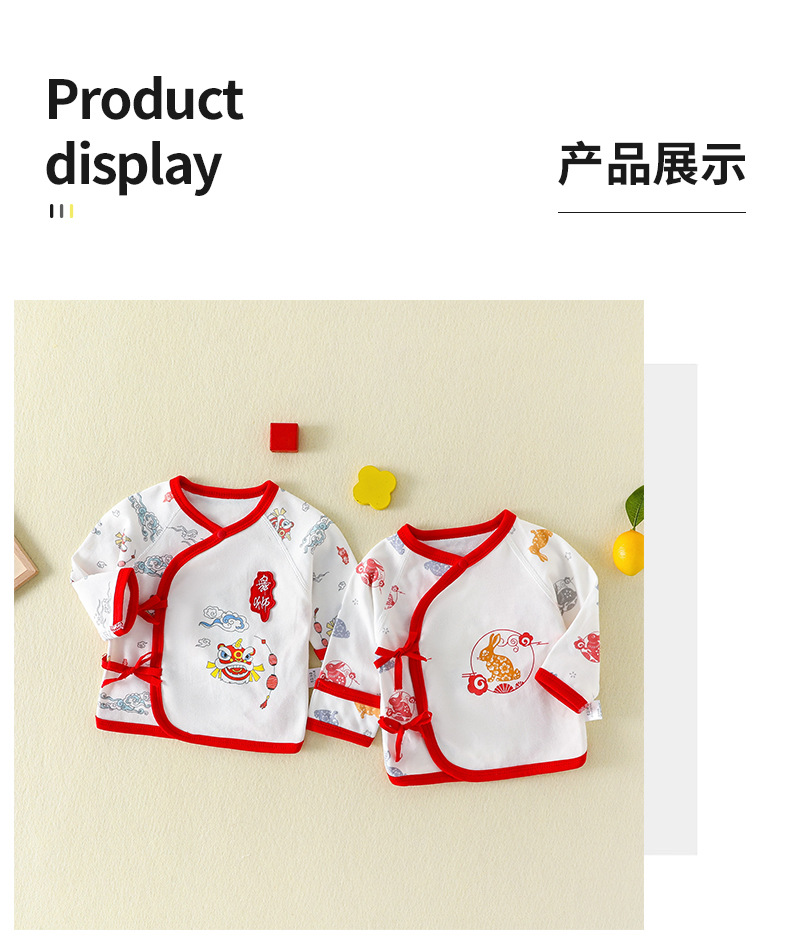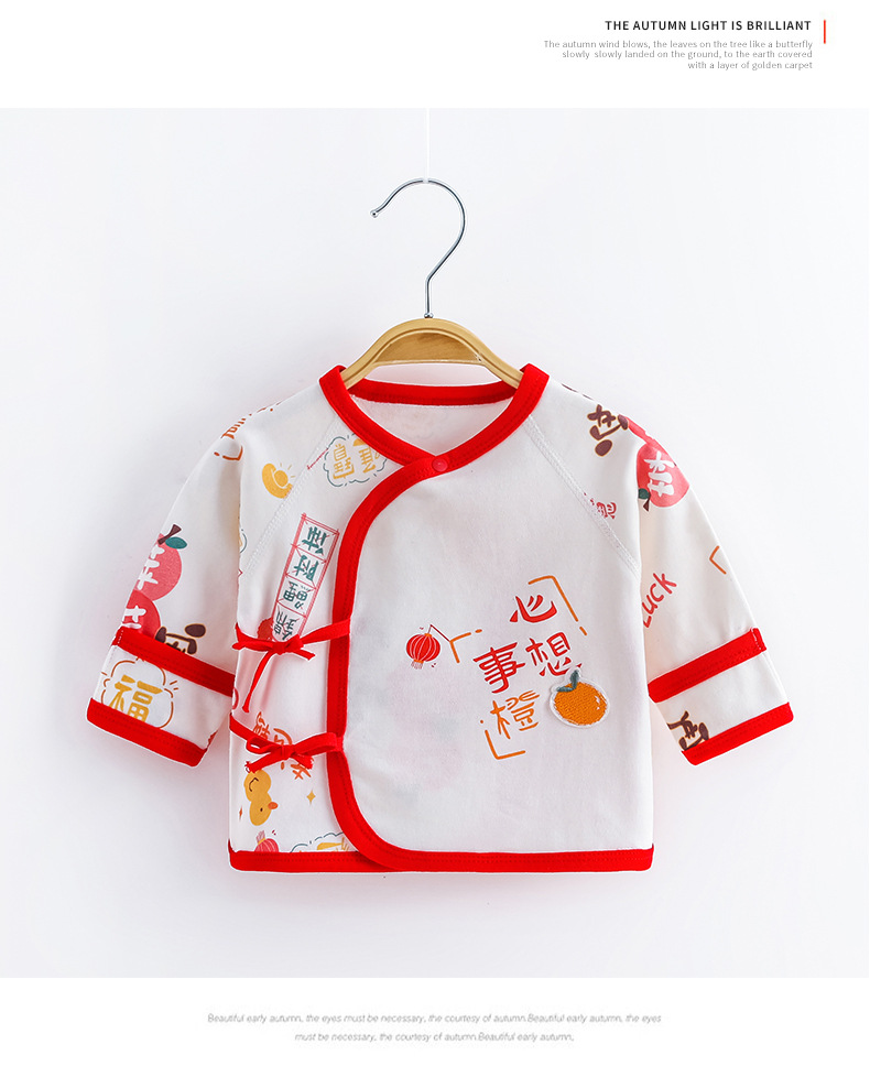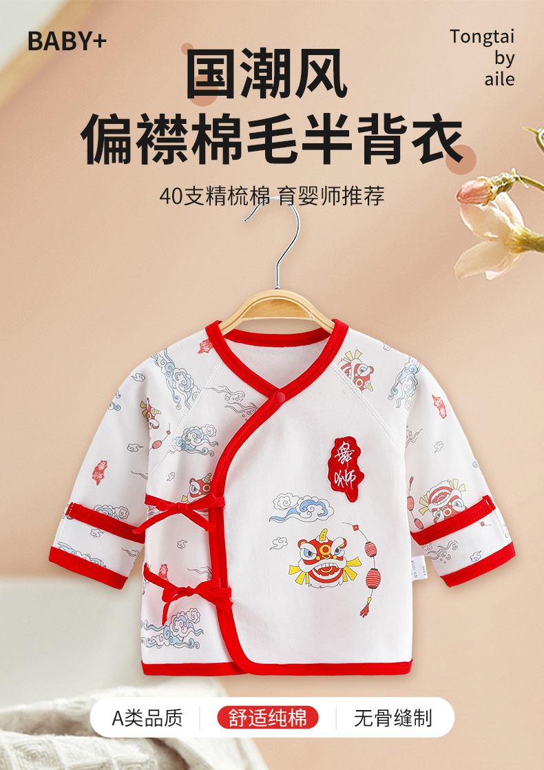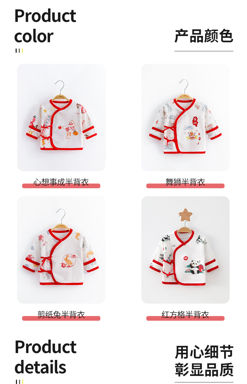 【国潮风偏襟棉毛半背衣】春秋款婴儿纯棉无骨半背衣初生女宝宝上衣系带和尚服初生儿半背衣