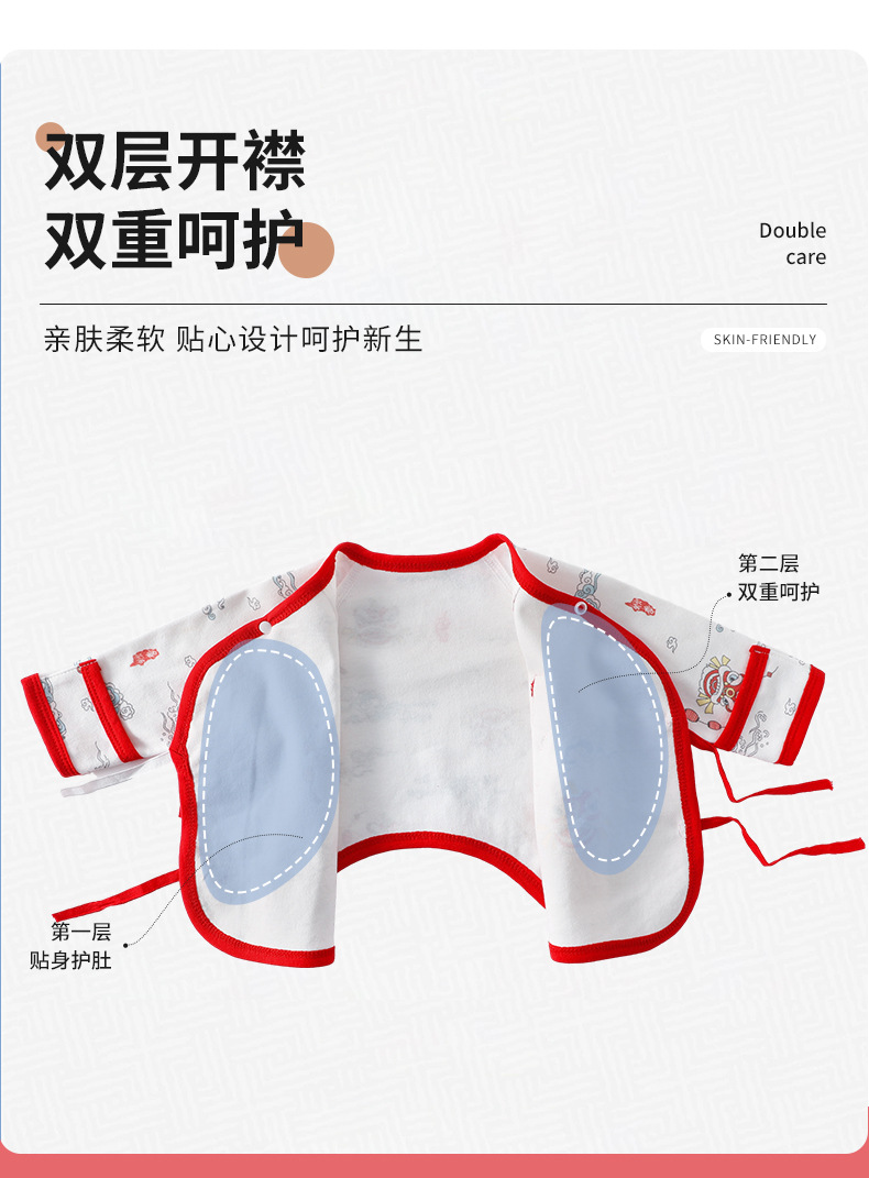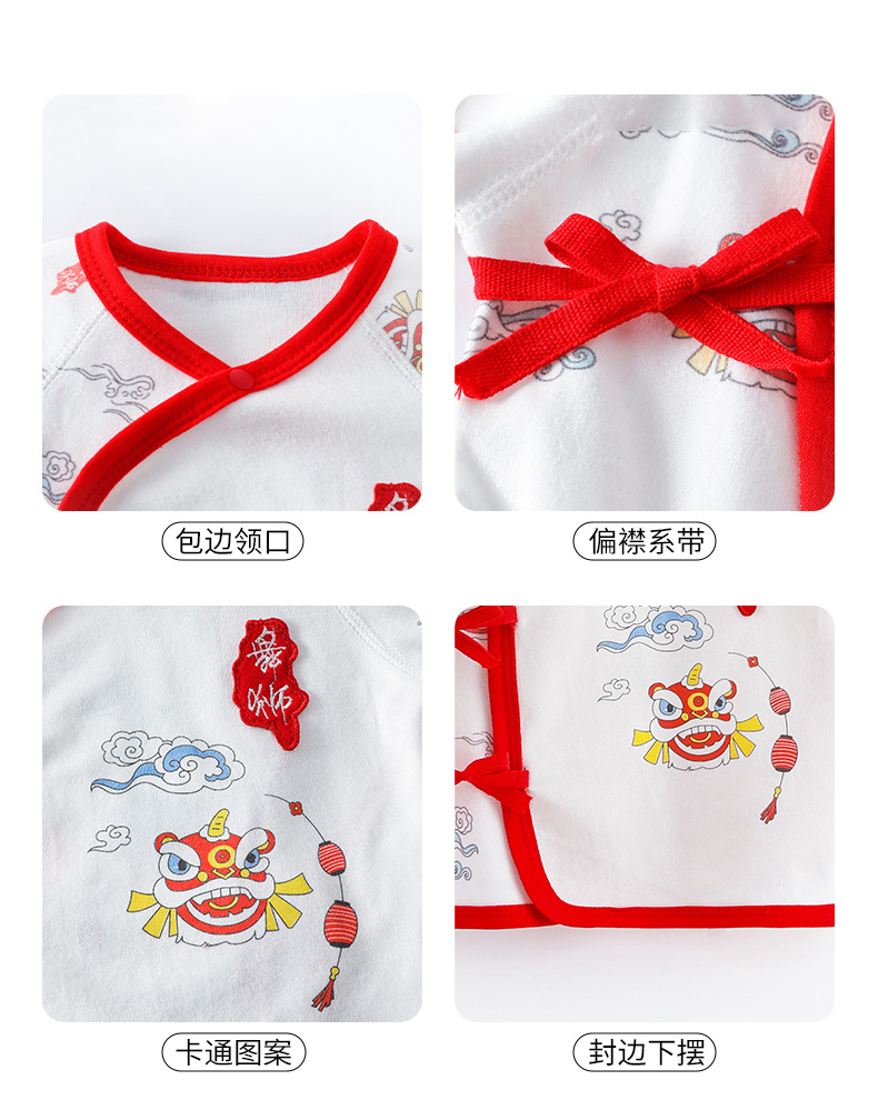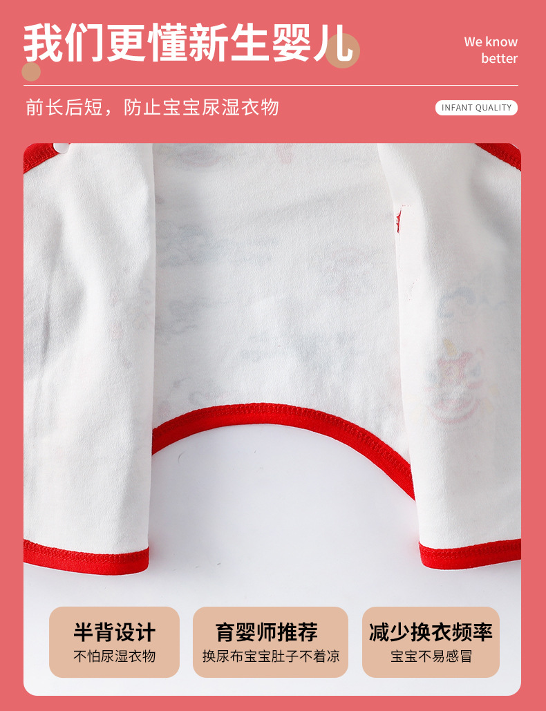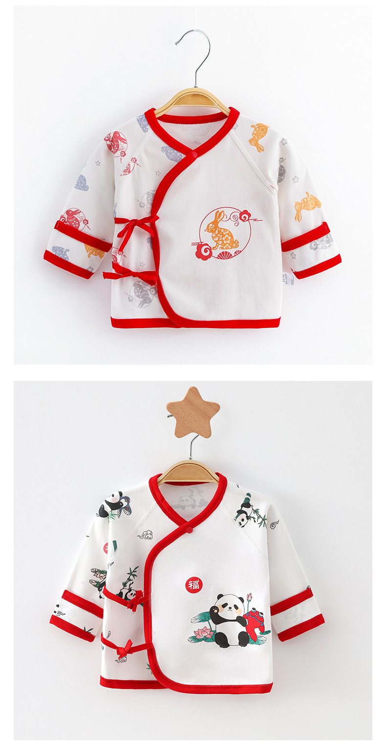 【国潮风偏襟棉毛半背衣】春秋款婴儿纯棉无骨半背衣初生女宝宝上衣系带和尚服初生儿半背衣