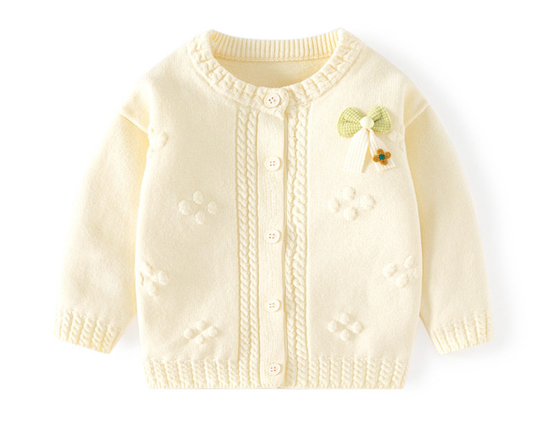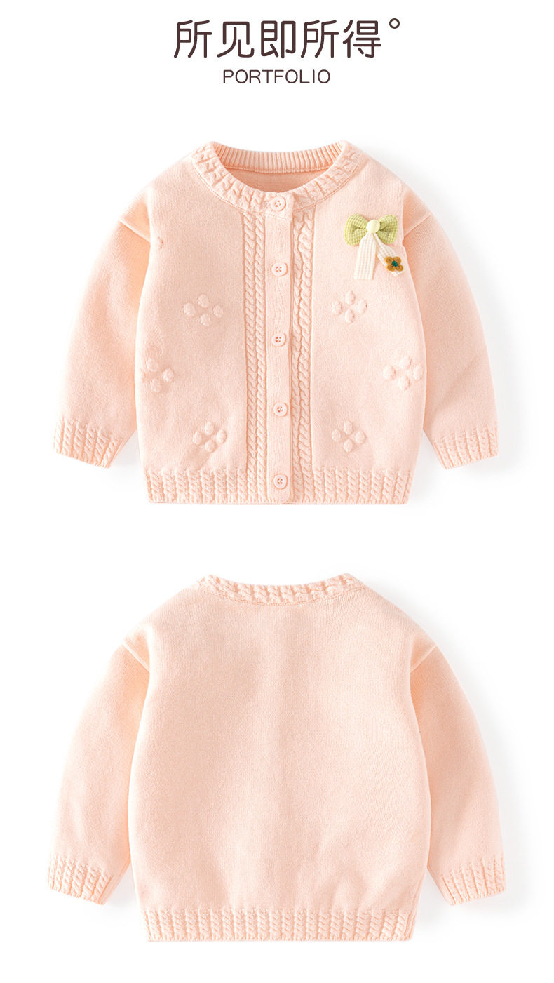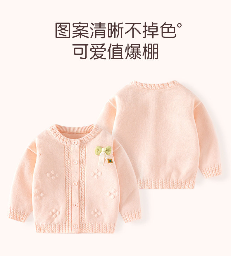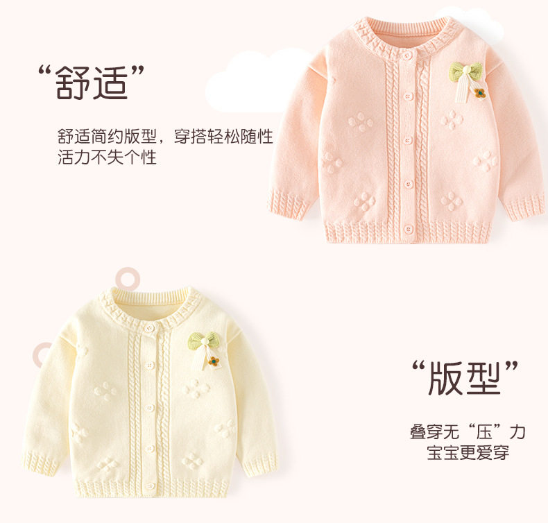 纯棉针织女童毛衣开衫A类蝴蝶结纯色针织婴儿毛衣秋冬款宝宝外套