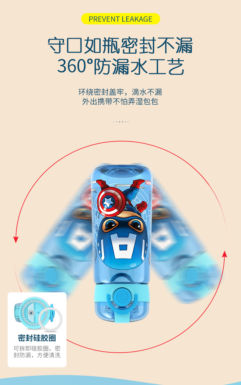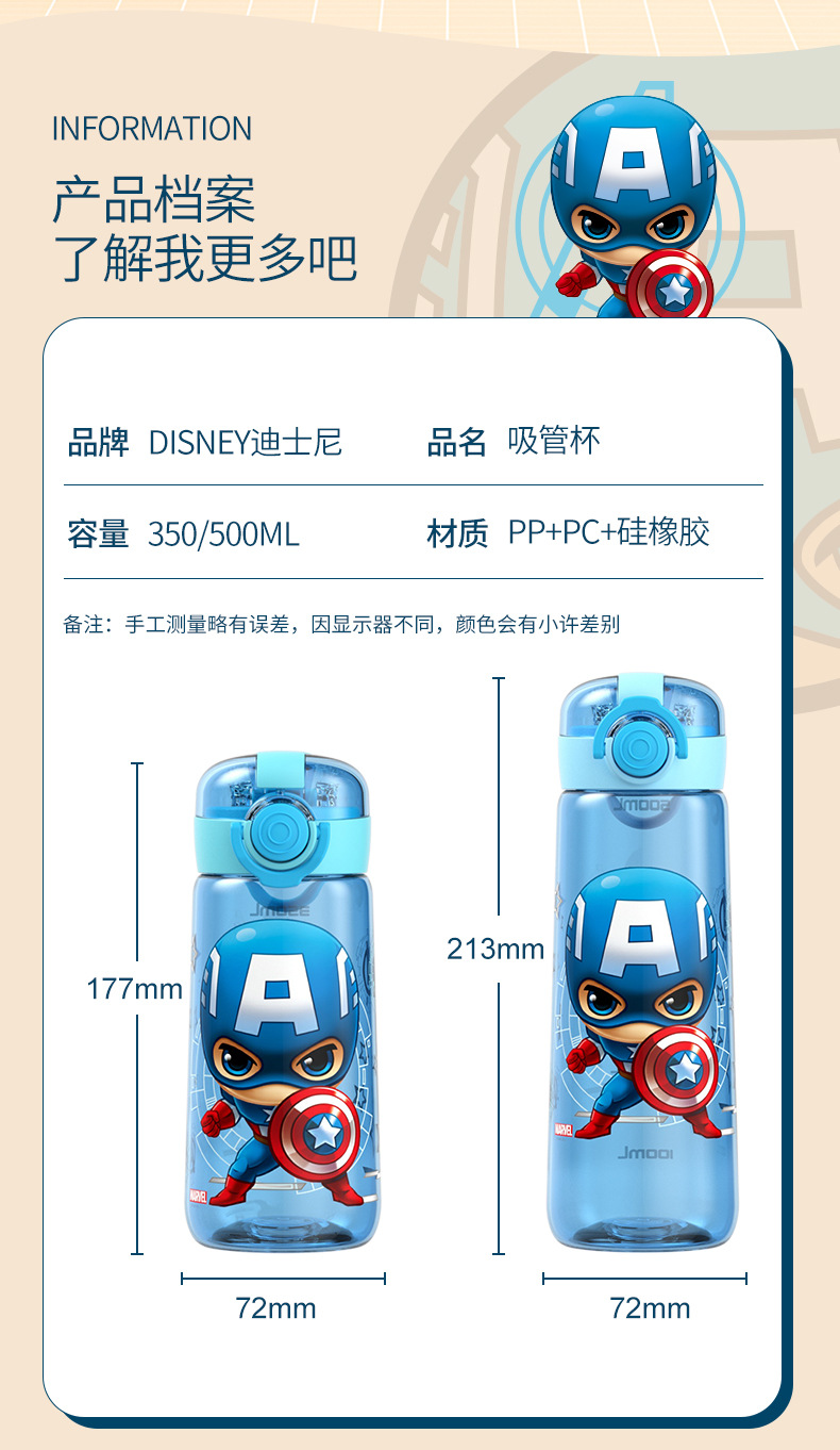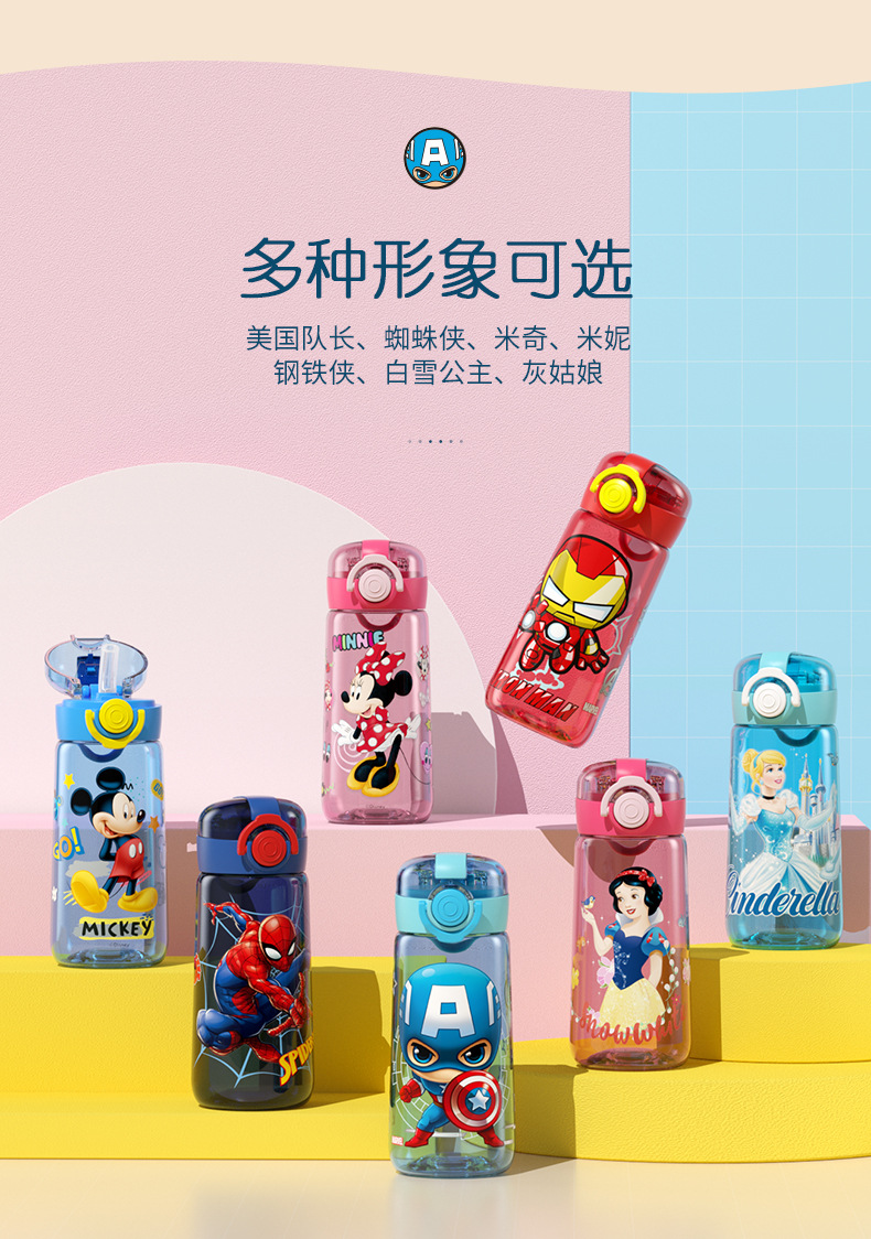 【畅饮随行】迪士尼夏季新款卡通便携吸管杯塑料儿童水杯学生水壶太空杯